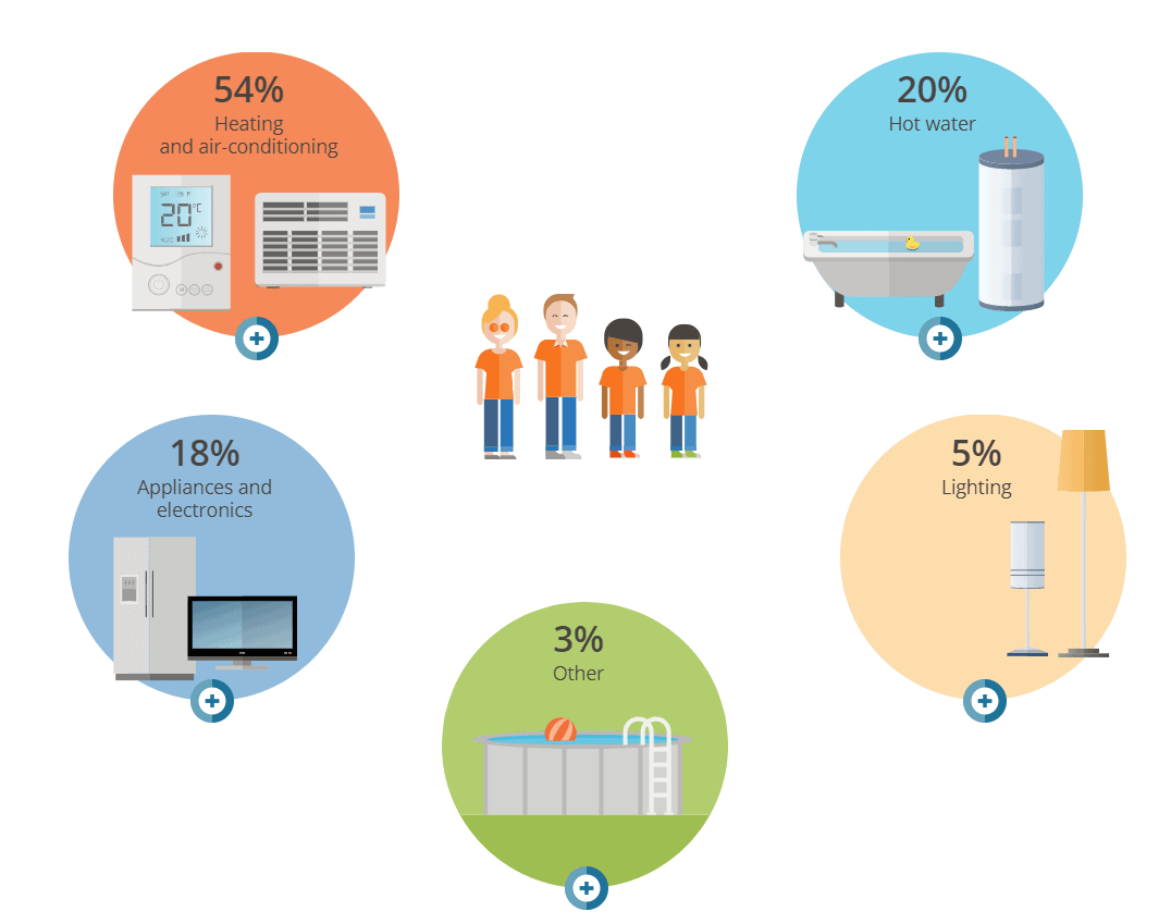 To start with, consider the following image retrieved from Hydro-Quebec’s website, qualifying the different ways electricity is used by the average household that uses electric heating: