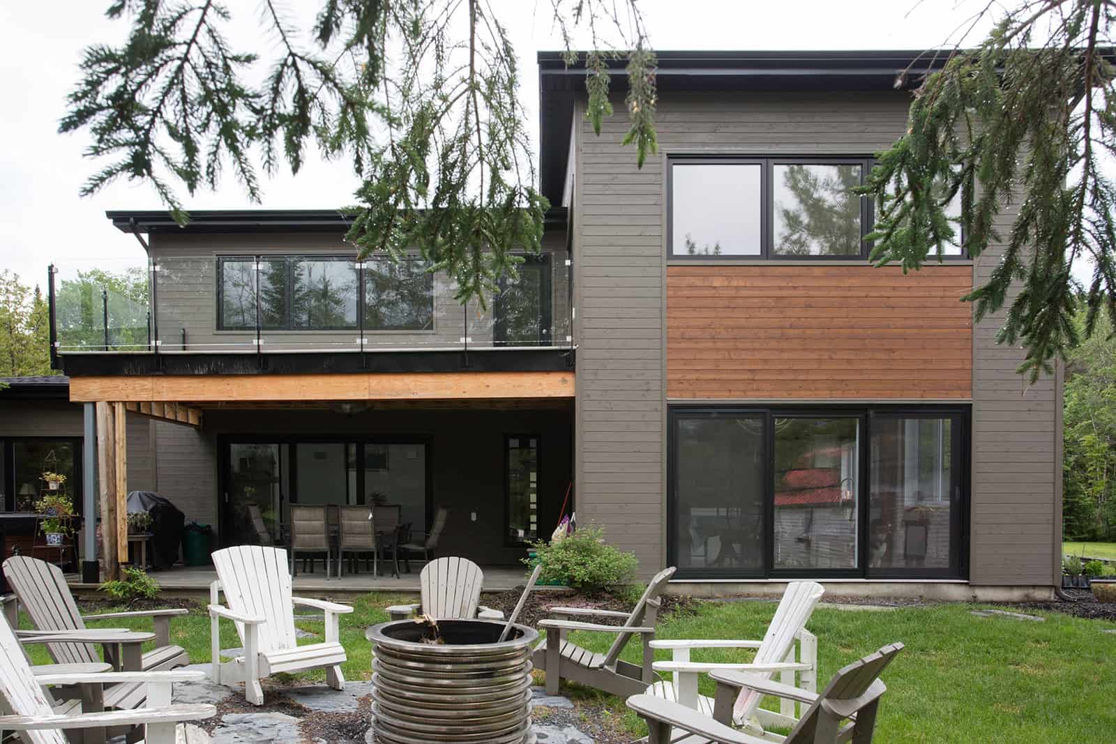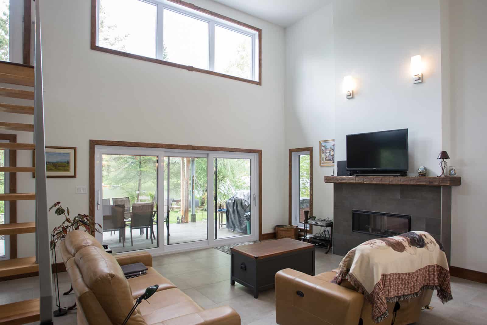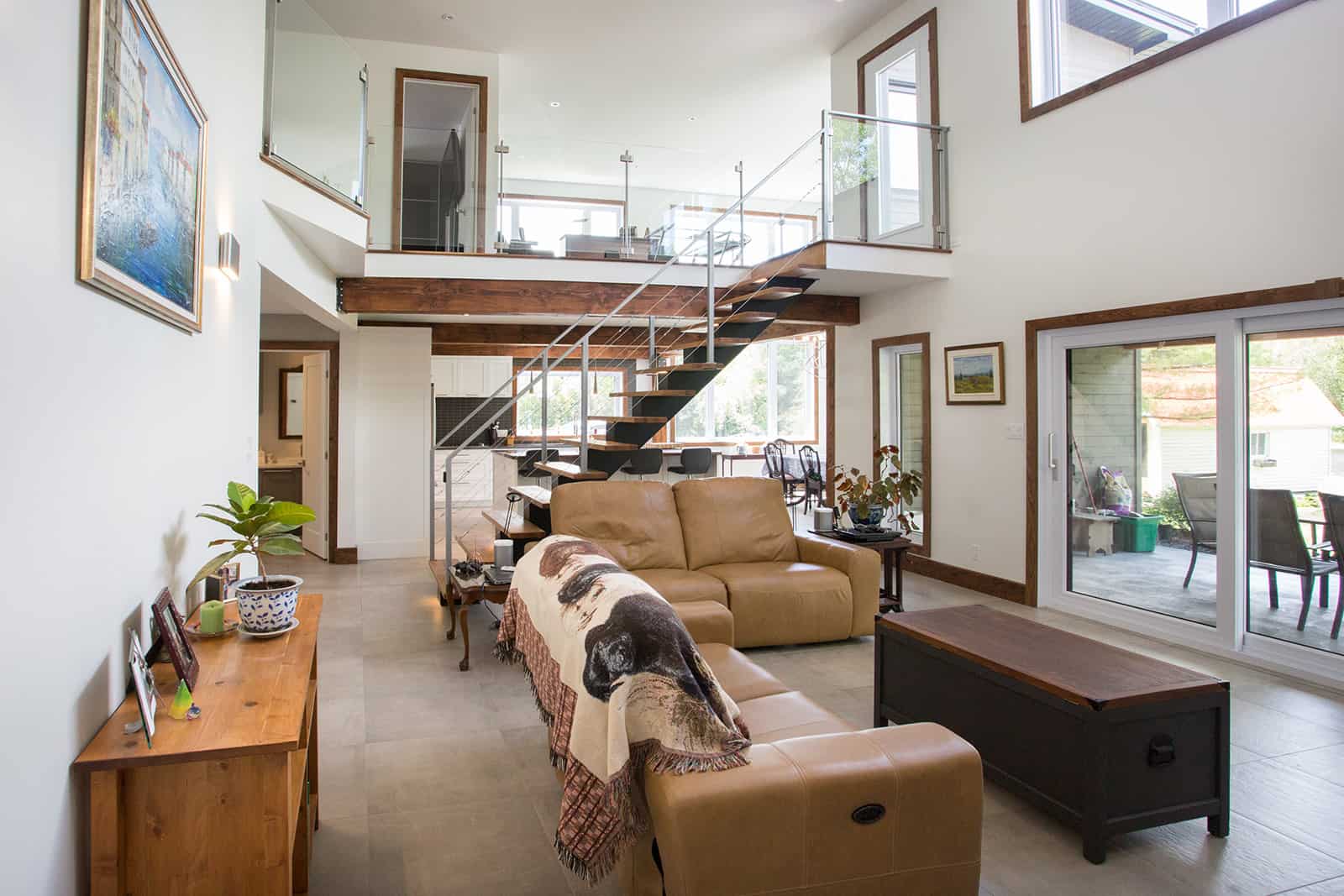 As soon as you walk into this home, you can feel the spacious open concept that was ingeniously designed by UrbanEco’s architecture and design team. Making the most of the Brompton Lake shoreline, huge windows adorn the façade to offer breathtaking views of the water. The ceilings up to 17 feet high, a central staircase and glass railings between floors help amplify the sense of grandeur. Exposed beams give even more character to this magnificent house that is flooded in natural light. A mezzanine with 2 additional bedrooms and a large living room complete the living space.