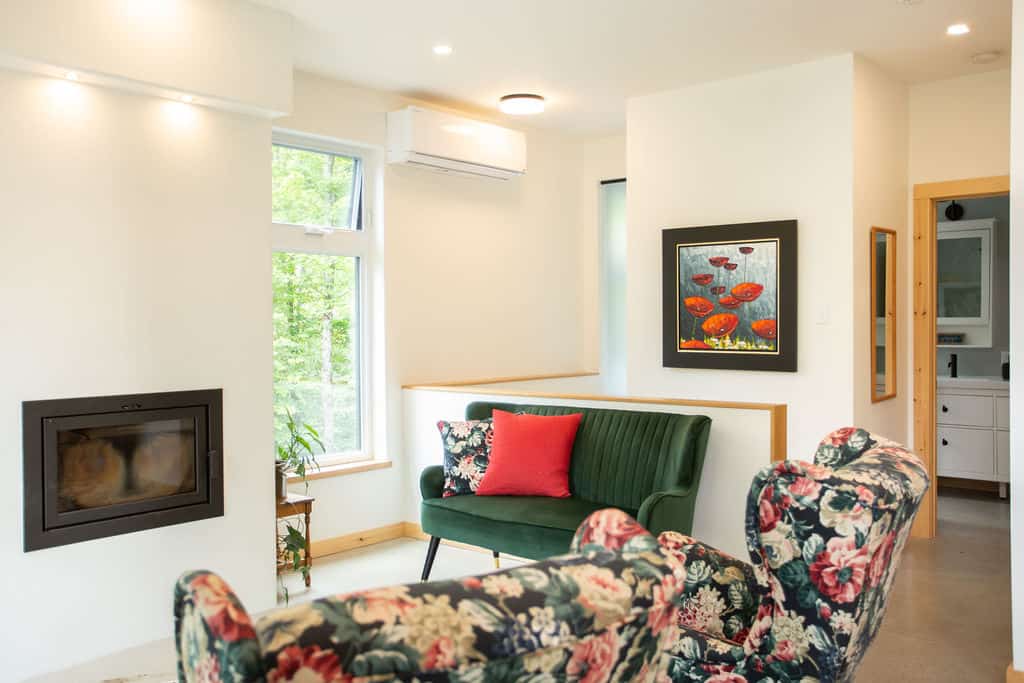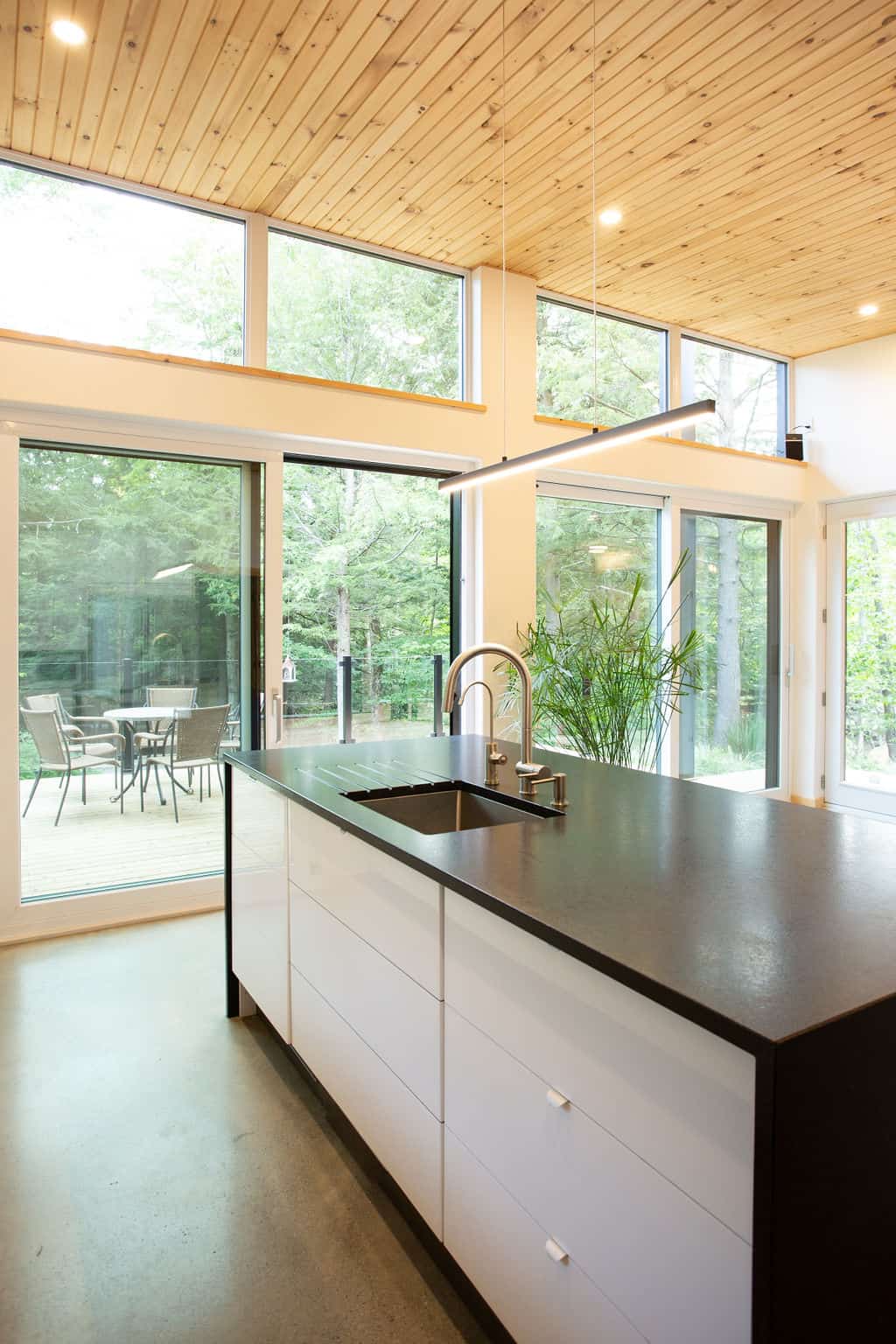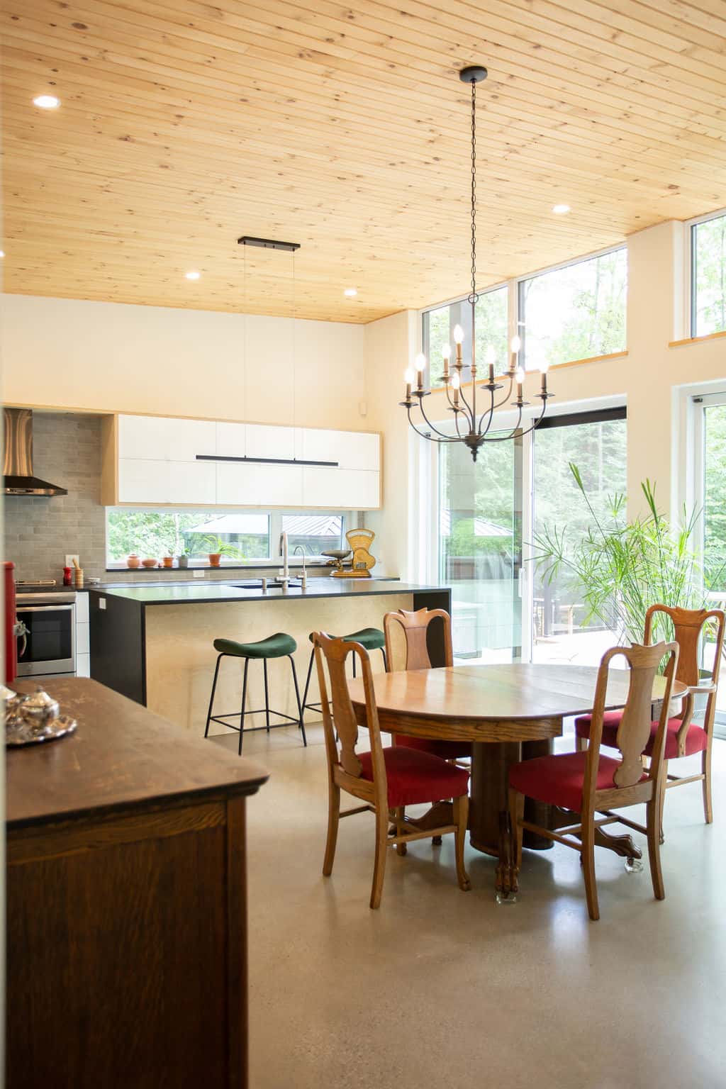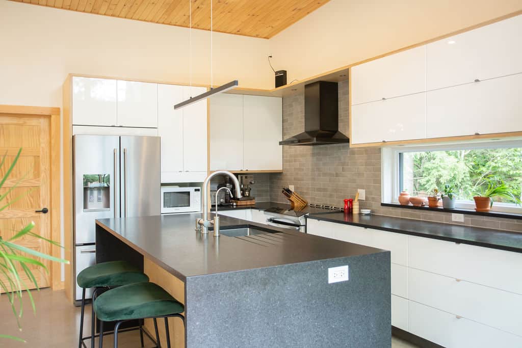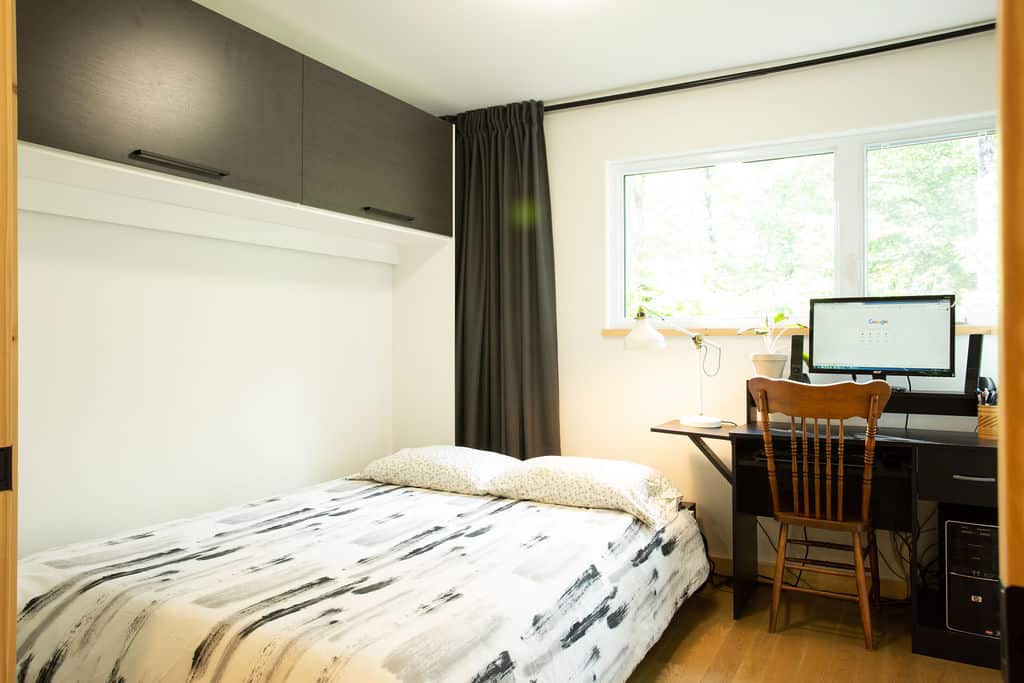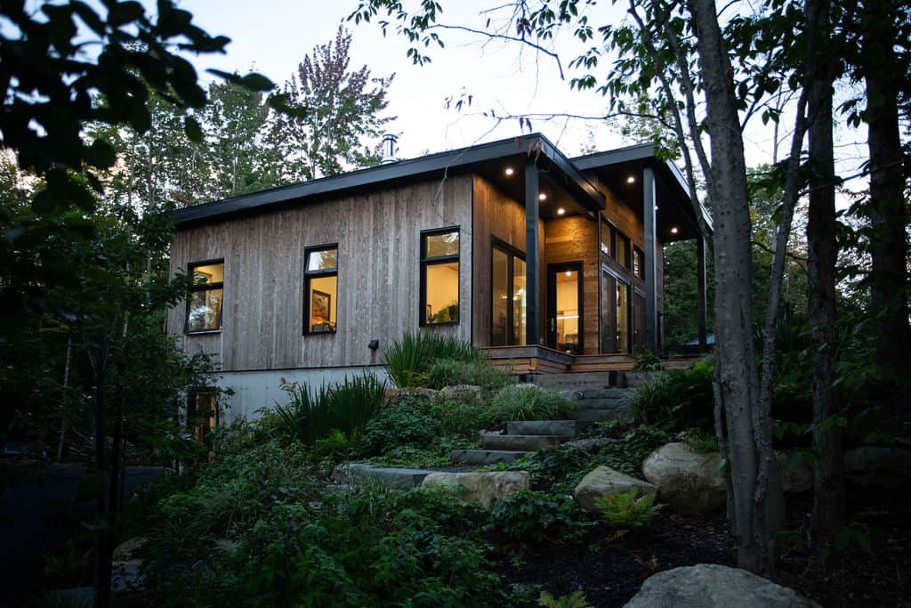 Sitting pretty in the middle of a mature forest, this house was designed with the purpose of being a gathering place for our clients’ now-grown children whenever they visit. Multipurpose rooms allow our different configurations of the spaces, according to their needs. Specifically, the master bedroom can be sectioned off in two bedrooms with French doors and an office space can quickly become a makeshift bedroom, thanks to a murphy bed.