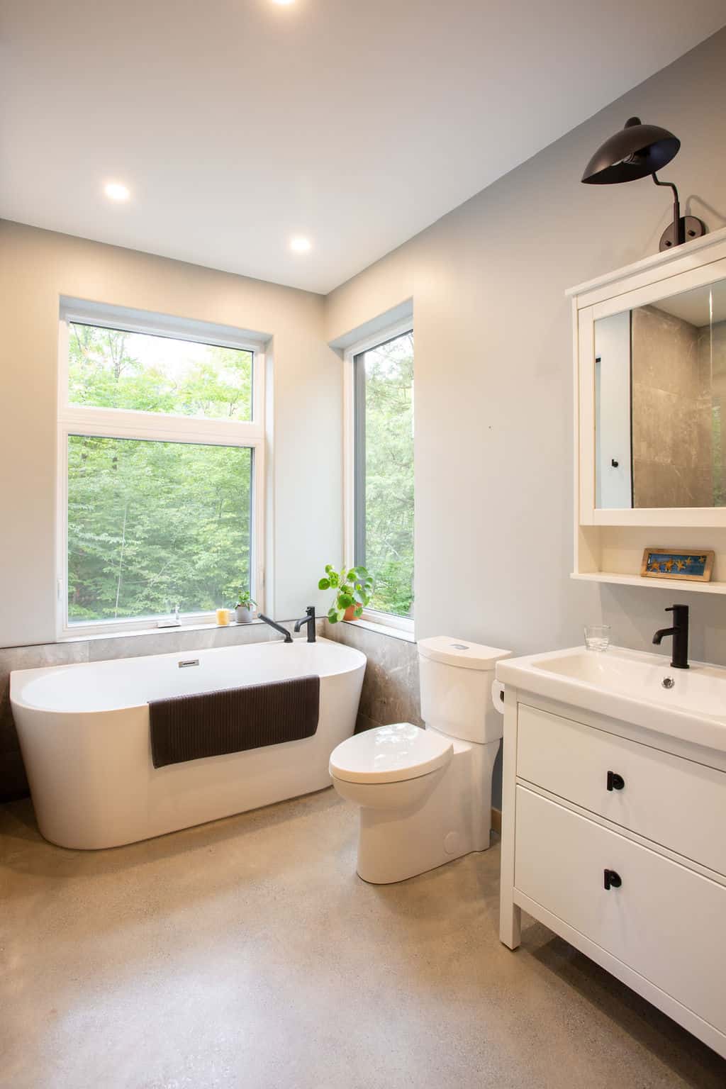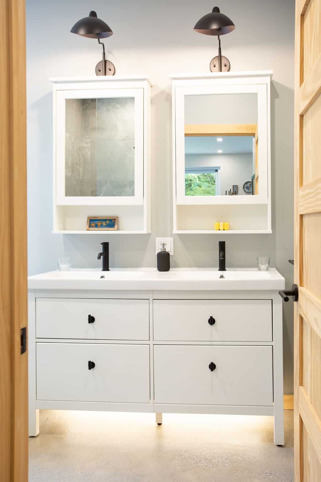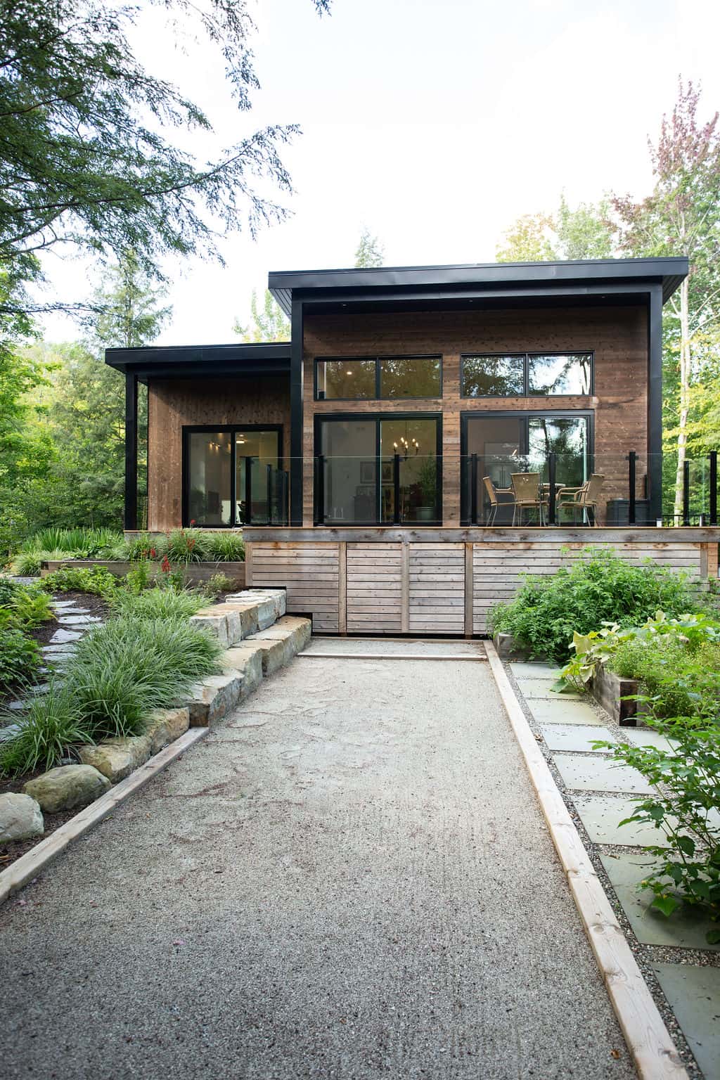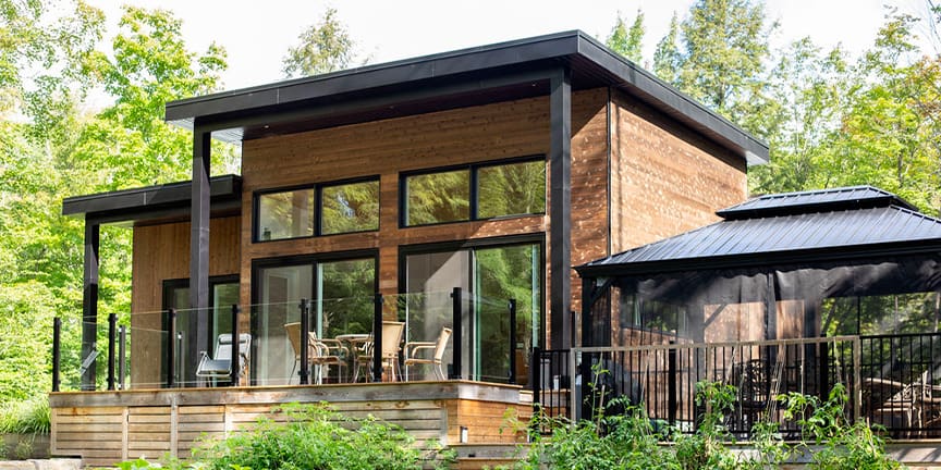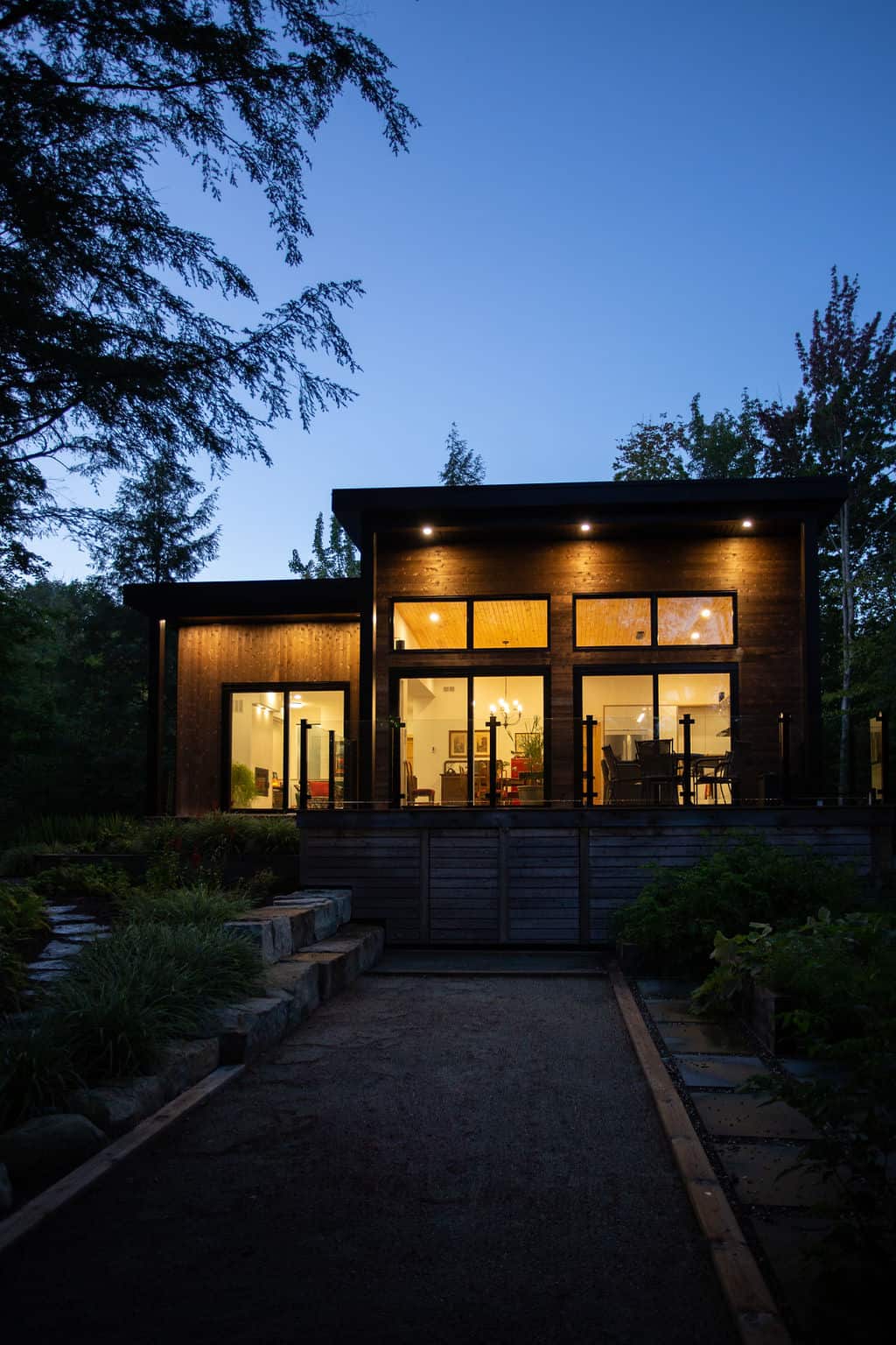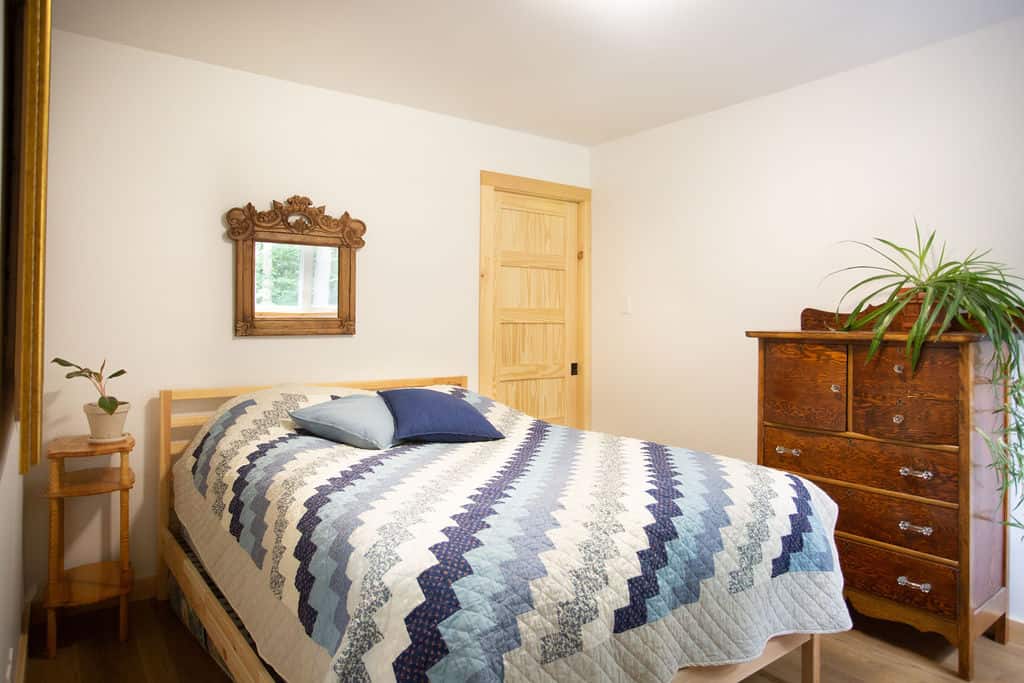 Sitting pretty in the middle of a mature forest, this house was designed with the purpose of being a gathering place for our clients’ now-grown children whenever they visit. Multipurpose rooms allow our different configurations of the spaces, according to their needs. Specifically, the master bedroom can be sectioned off in two bedrooms with French doors and an office space can quickly become a makeshift bedroom, thanks to a murphy bed.
