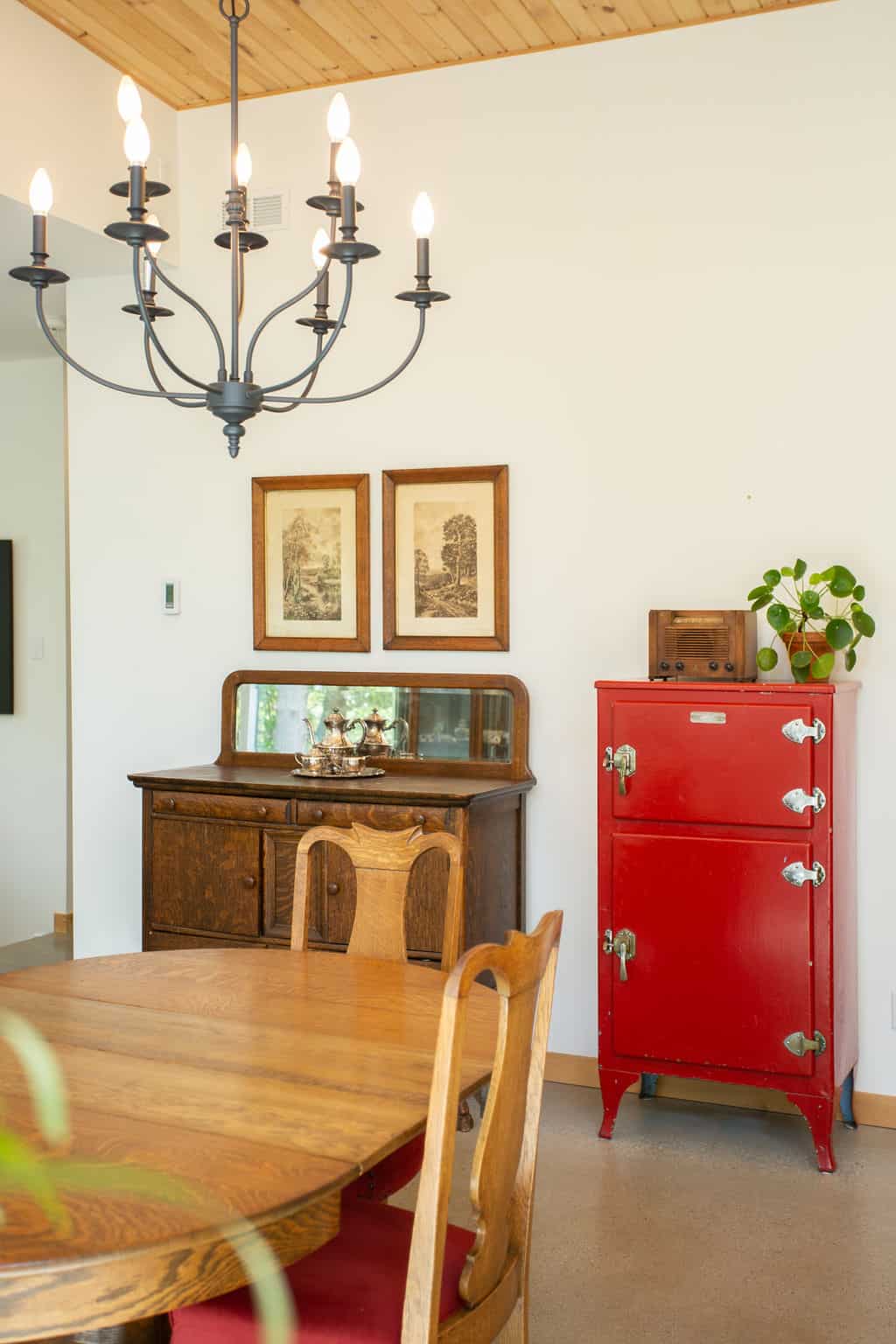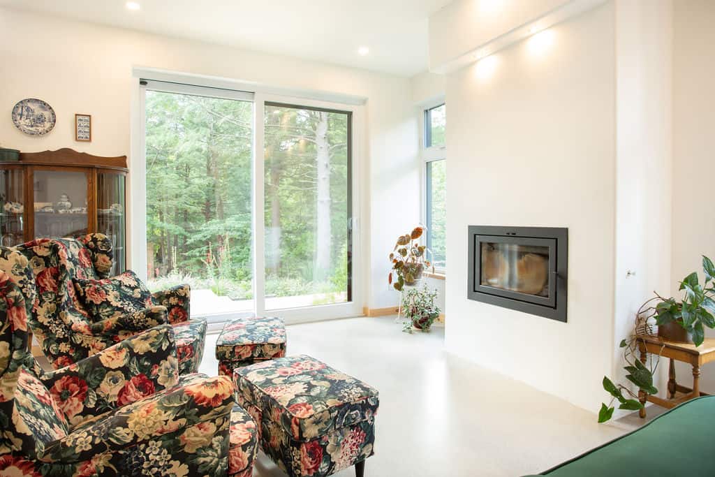 The efficiency of the house is thought to last through the seasons and the years, with a sustainable house envelope, triple-glazed windows, and a sunshade incorporated into the roof. Finally, the eclectic mix of old and new furniture offers a fun contrast with the contemporary architecture.