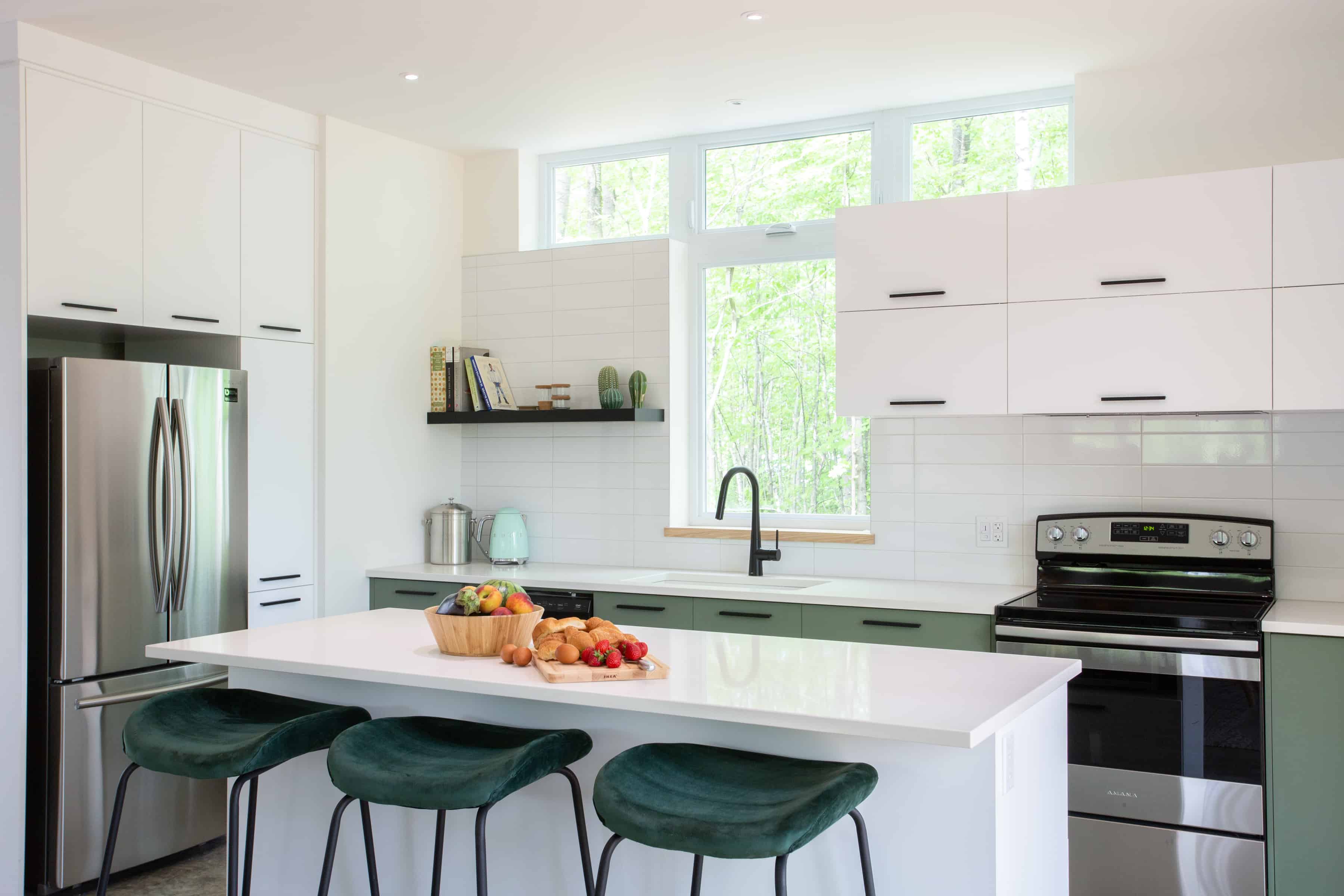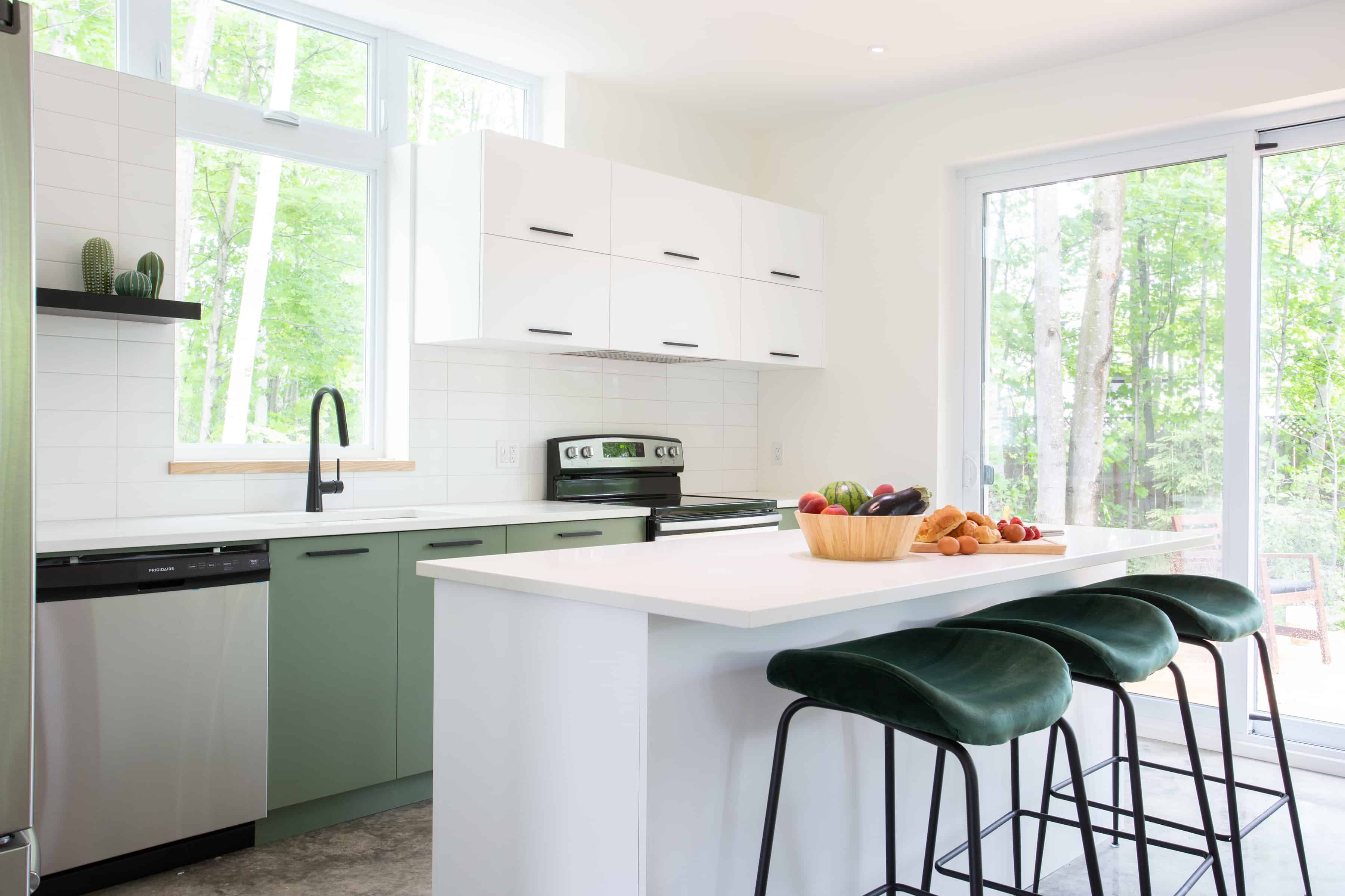 Welcome to the model home la Zéta, which officially launched our eco-district Les Boisés UrbanÉco in Deauville. This home was designed and built according to the values of this new district whilst enhancing the beauty of the surrounding nature. Bright and functional, this 1,326 square feet house is ideal for the dynamic couple who became its owners in July 2021. The two storeys of the house include 3 bedrooms with a full bathroom and a big storage space on the top floor, and a laundry / powder room on the main floor. An intimate patio-terrasse at the back invites you to immerse yourself in nature and make the most of the outdoors, even in the Fall on a chilly day!