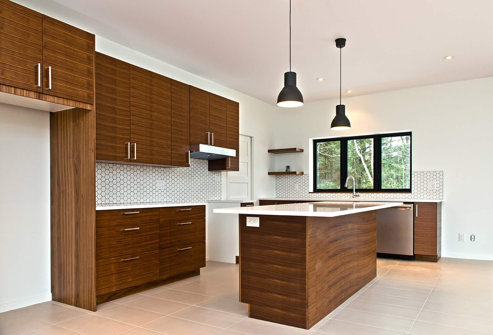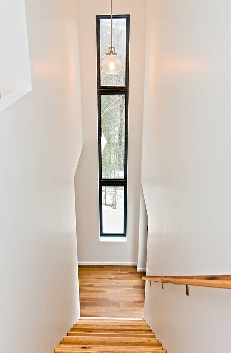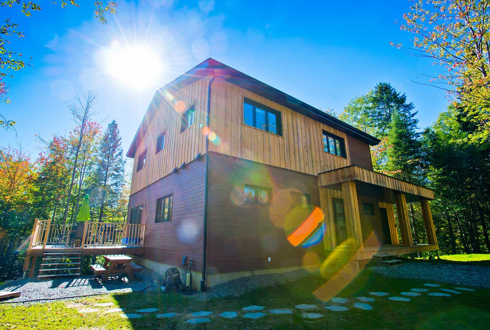 This house is situated in the magnificent Eastern Townships forest and well adapted for family life. Spread on three floors, each inhabitant can find their own space. The building envelope is energy efficient and the materials are noble, creating an enjoyable and comfortable atmosphere for everyone.