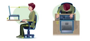 C’est essentiel au bon travail long terme : il faut un poste de travail respectant les règles de bases en la matière. Tout d’abord, vos coudes, détendus, devraient être à hauteur de la table. Si vous ne possédez pas de chaise réglable, vous pouvez toujours ajuster la hauteur à l’aide d’un coussin, par exemple. Ensuite, portez attention à l’angle de vos poignets sur le clavier et la souris. S’il est trop accentué, envisagez changer de matériel pour quelque chose de plus ergonomique. Votre écran, lui, devrait être directement à la hauteur des yeux, de manière à épargner votre cou et votre dos. Finalement, les pieds bien appuyés au sol, sur un cube ou un support quelconque. Pour votre bien-être, priorisez aussi d’avoir assez d’espace pour bouger un peu et changer de position de travail. Un petit moment pour s’étirer ou une petite séance de yoga, pourquoi pas?!