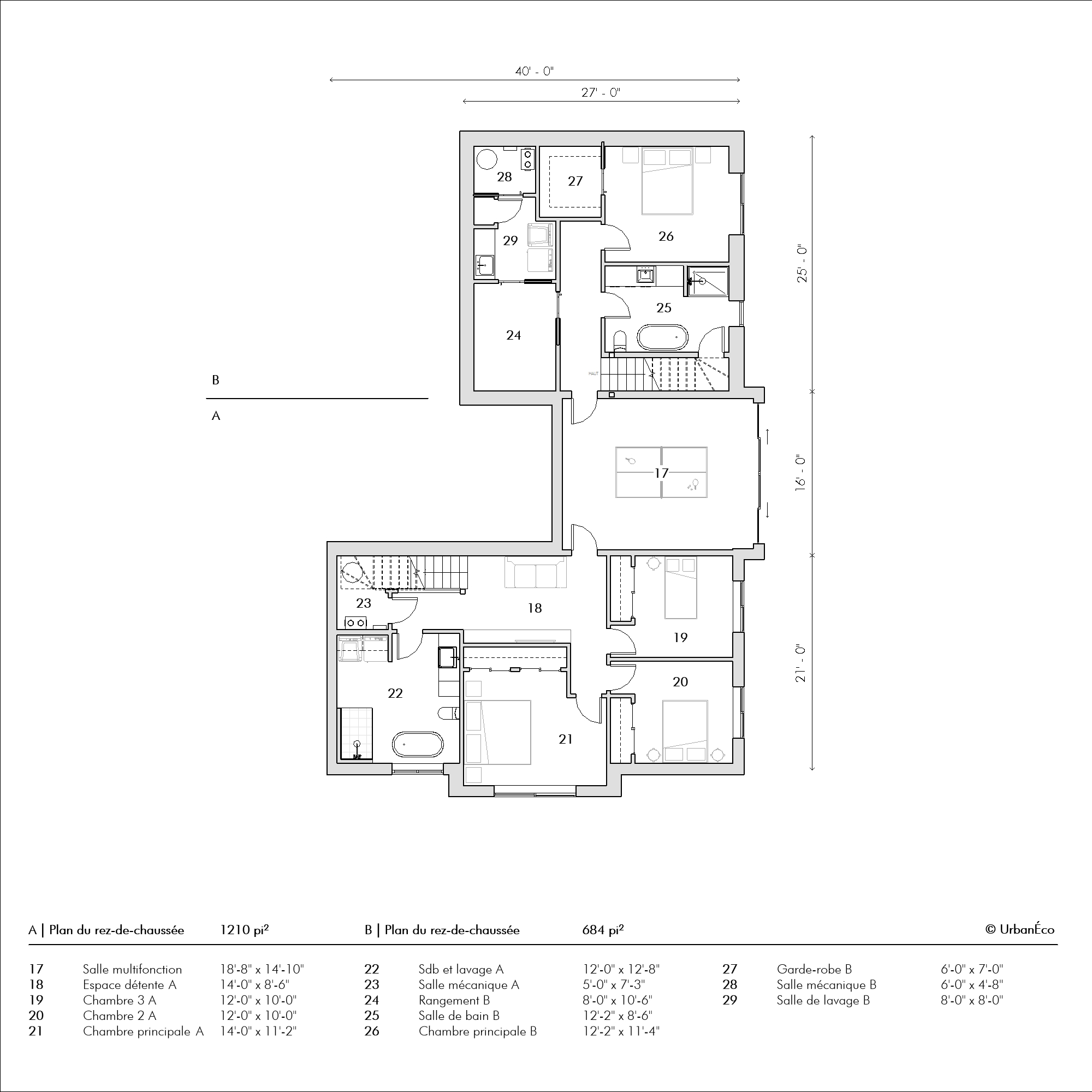 - 3 796 pieds carrés (RDC 1898 pi2 et RDJ 1989 pi2)