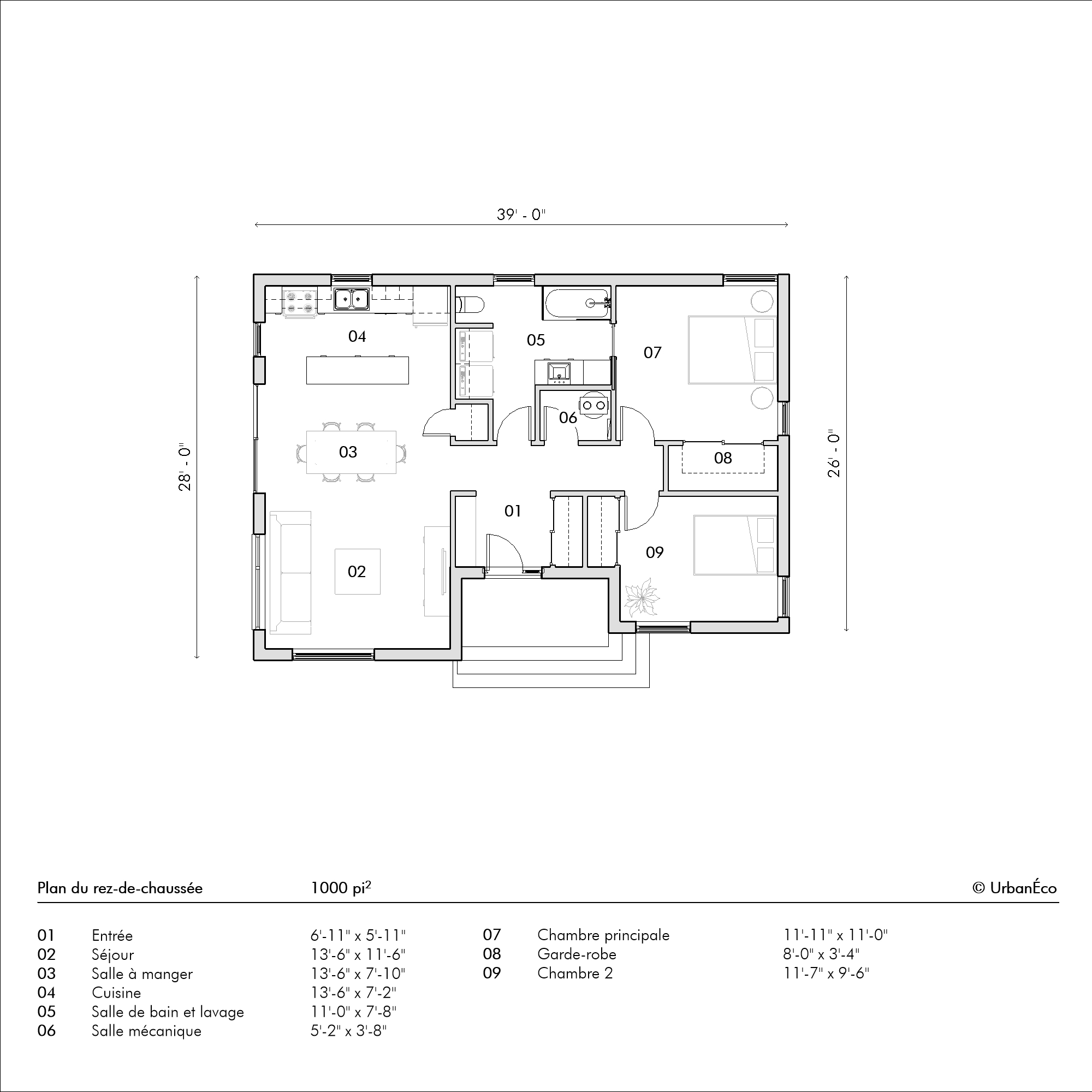 - Possibilité d'ajouter un rez-de-jardin de 1000 pc