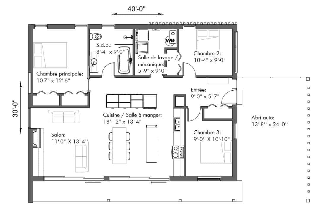 - 1200 pieds carrés