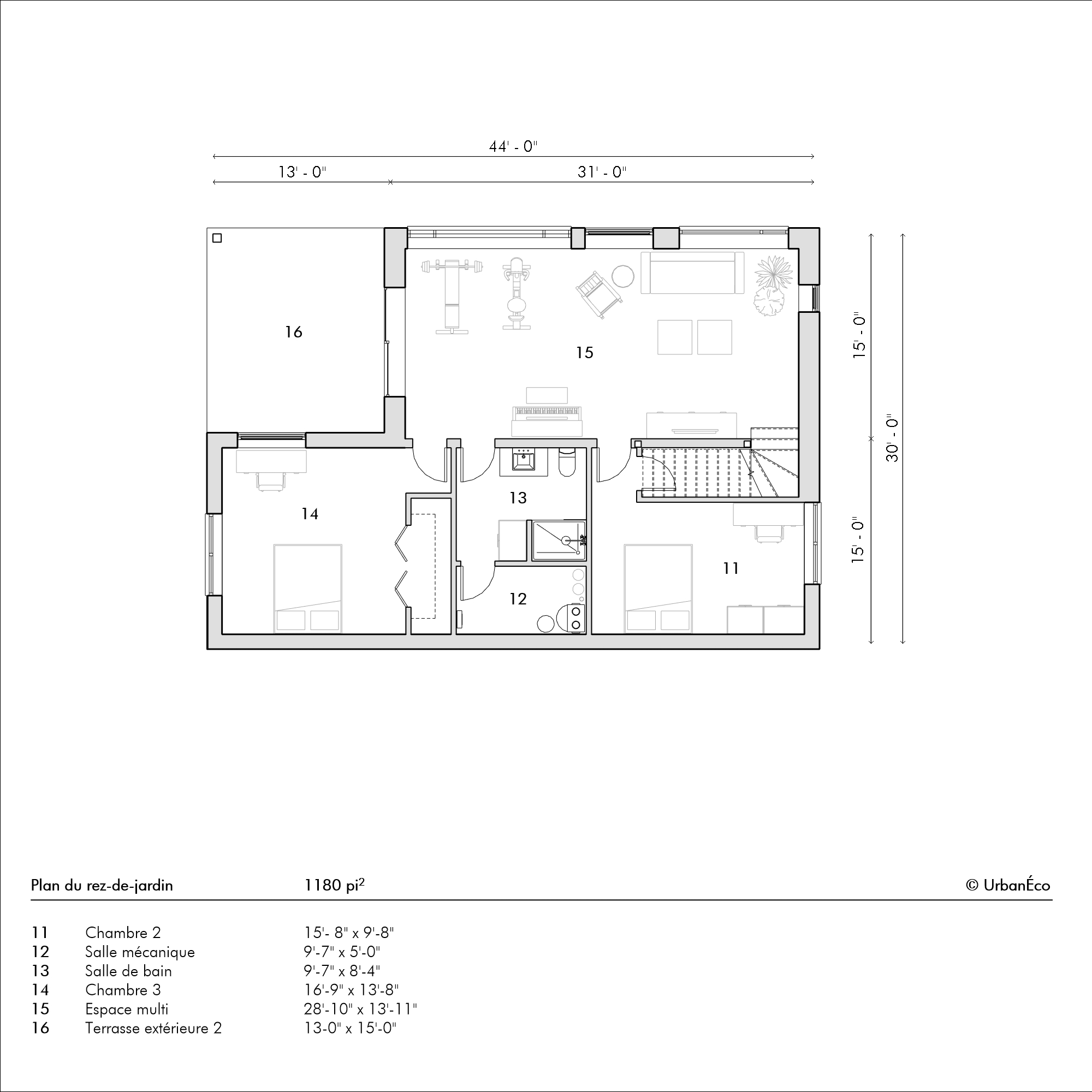 - 2 étages (RDJ + RDC)