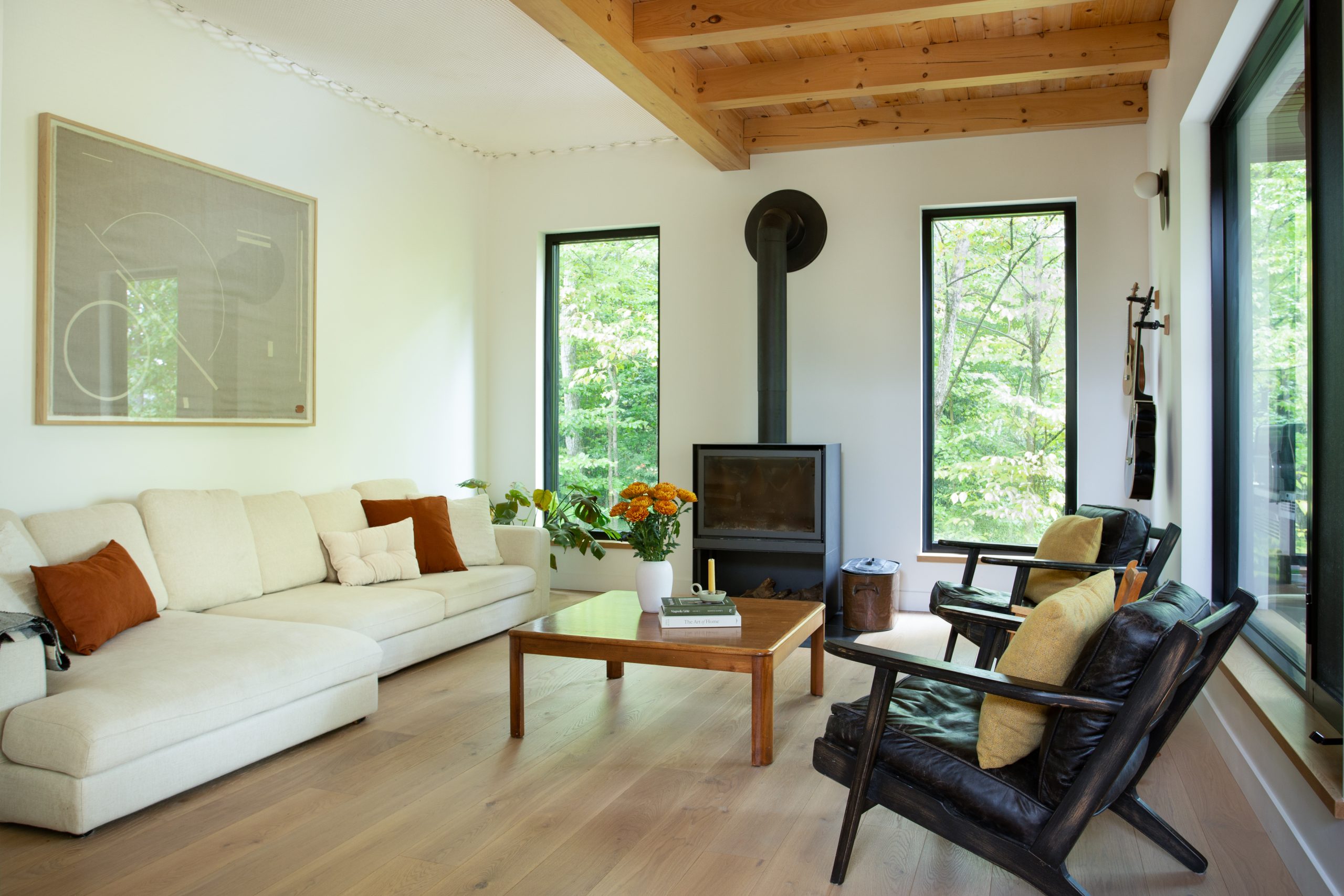 La Blais-Monfette a été conçue pour répondre à tous les besoins de ses occupants. Avec son allure intemporelle, elle s'intègre parfaitement à l'emplacement choisi pour son implantation. La famille Blais-Monfette, naturellement active, profite chaque jour des joyaux de la nature, tout en bénéficiant de diverses installations sur leur propriété : poulailler, douche extérieure, jardins, terrasse et pit à feu. Dès l’entrée, la maison dégage une atmosphère chaleureuse grâce à ses planchers de bois et à son plafond cathédrale, qui donne une impression de grandeur saisissante. La mezzanine se distingue avec son lit suspendu en crochet, un espace où les enfants peuvent s’amuser pendant que les parents les surveillent depuis le salon en contrebas. Avec trois chambres, deux salles de bain, une salle d’eau, une mezzanine, un bureau et un garage, cette maison respire la convivialité et invite à la détente.