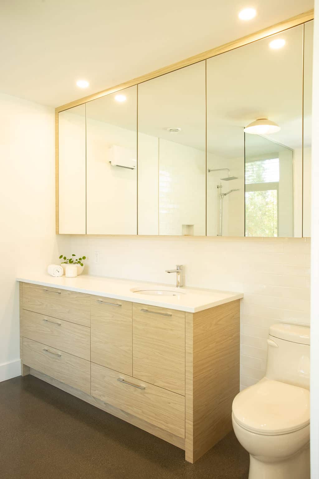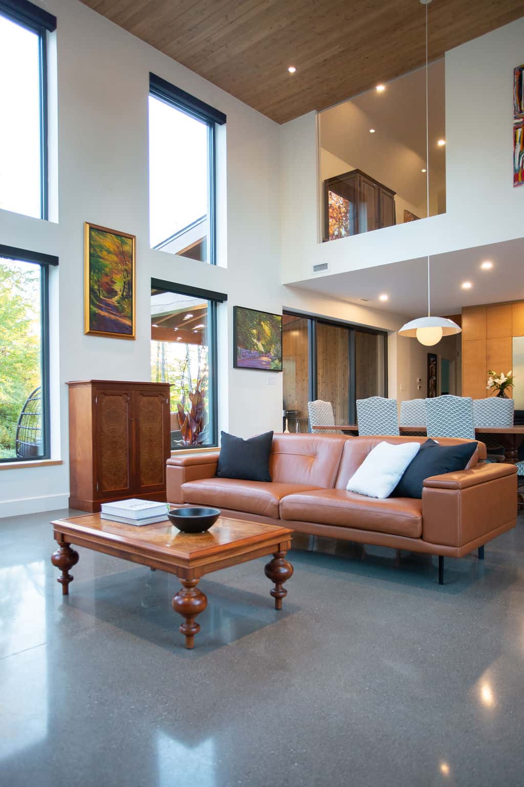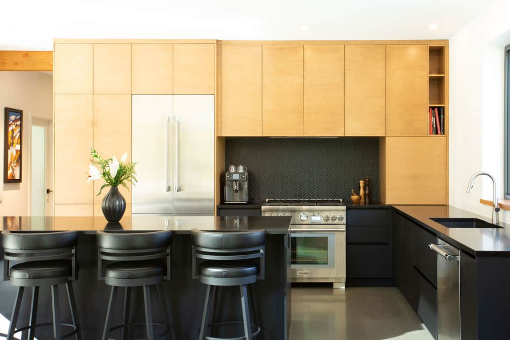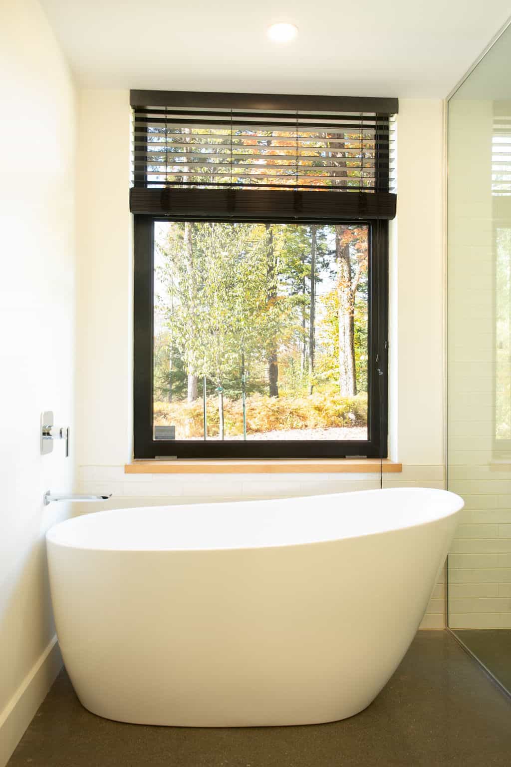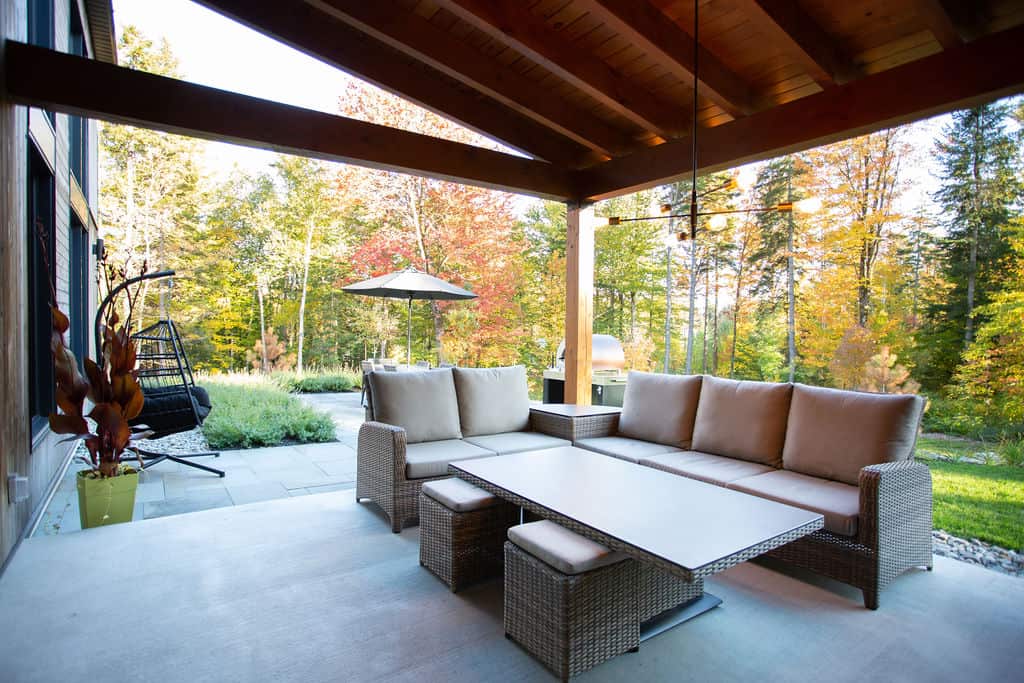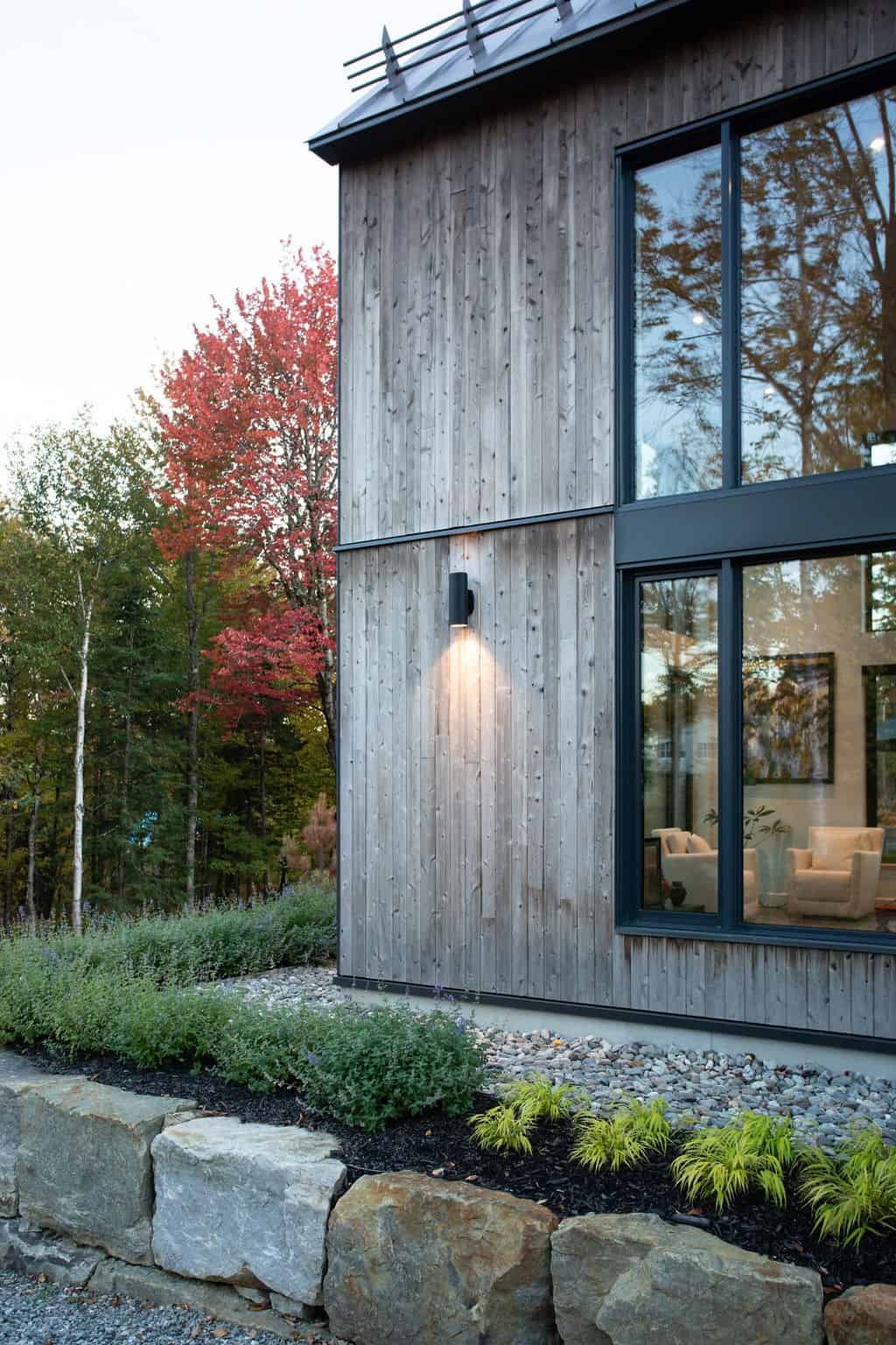 Sobre avec ses lignes simples, l’architecture permet aux volumes et ouvertures de rayonner dans toute leur splendeur. Les regards coulent de l’intérieur vers l’extérieur, dirigés par les percées méticuleusement positionnées sur le mont Orford, avec des vues traversantes. La note finale de cette symphonie entre nature et structure est jouée par la cour arrière privée qui donne l’embarras du choix pour profiter de l’extérieur: terrasse couverte en sapin douglas et terrasse non couverte, jardins complets, espace de feu intime.