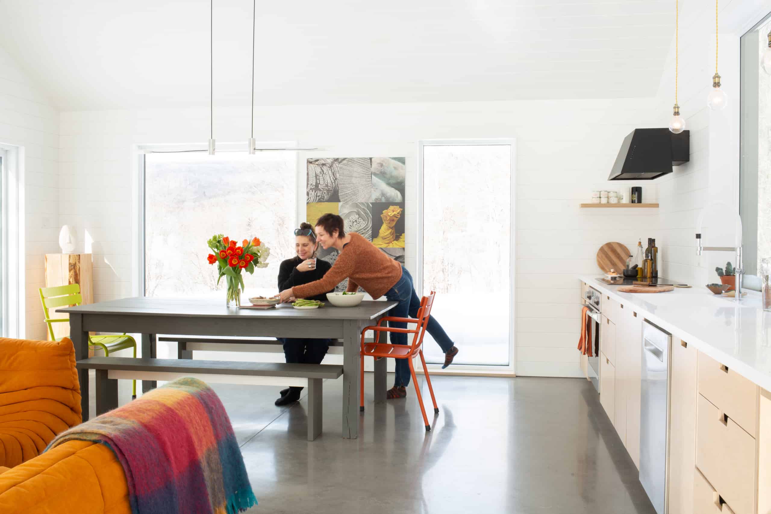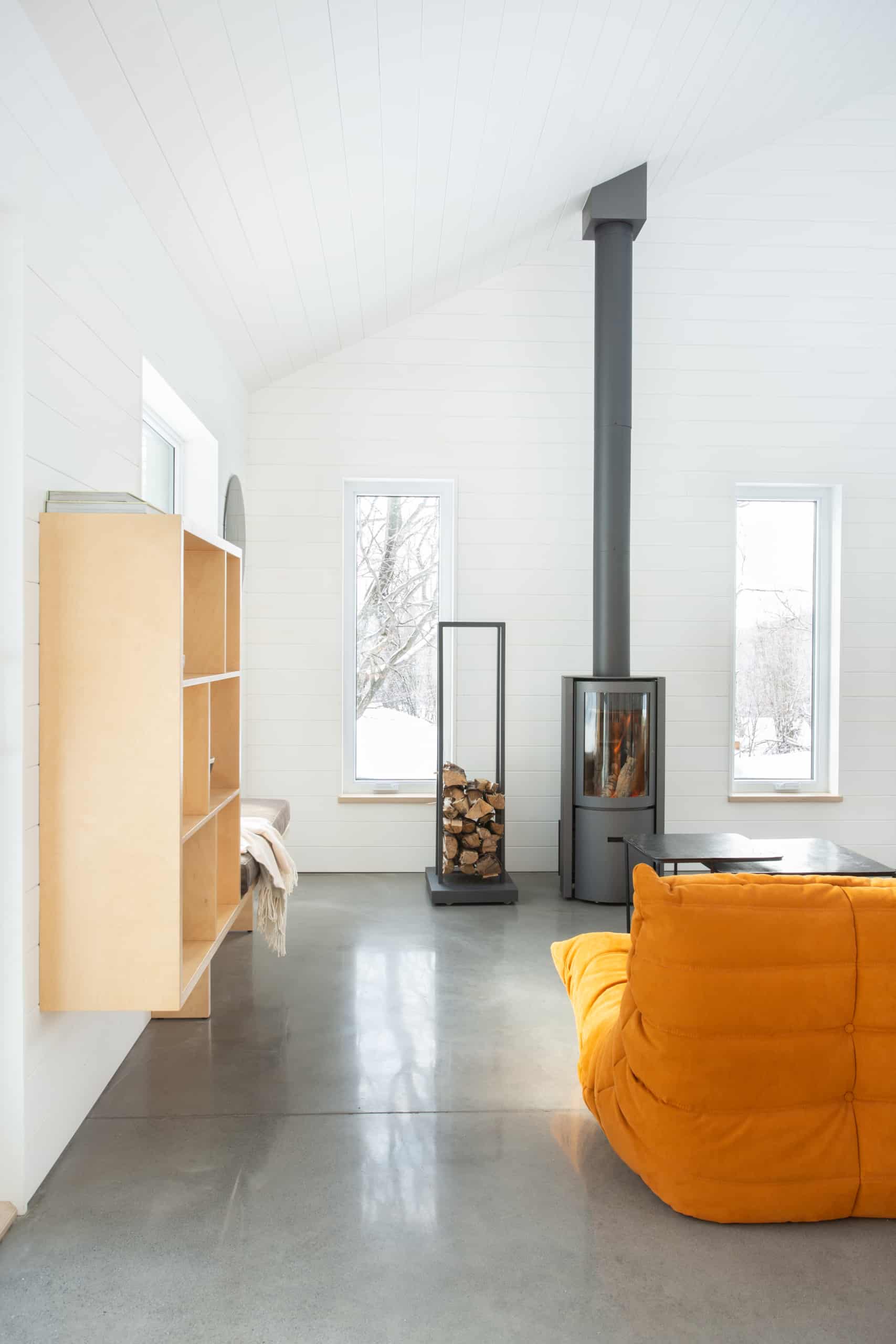 Dans les aires de vie, les percées sur la nature à 360 degrés nous imposent de ralentir. Inspirer, expirer... avec une bûche dans le poêle à bois pour réchauffer le corps et l’âme en temps d’hiver.