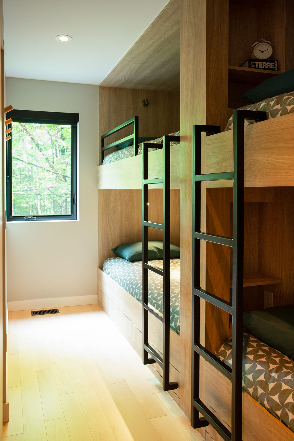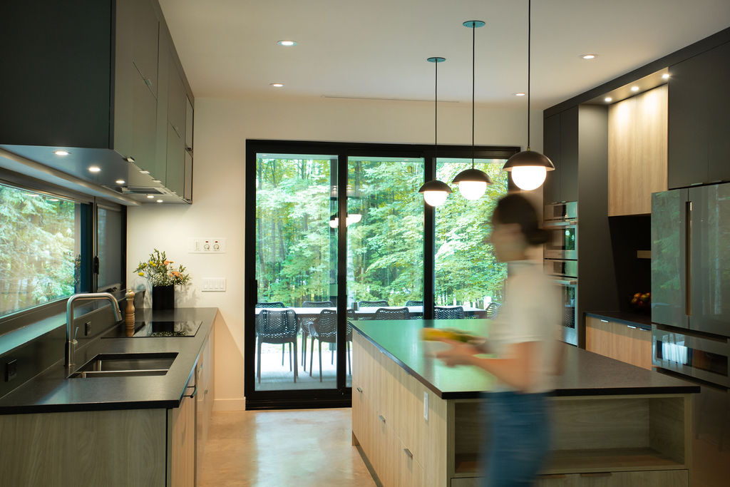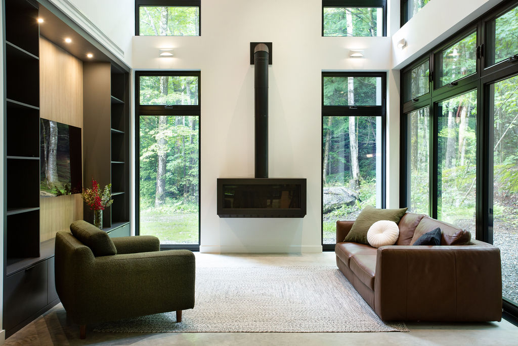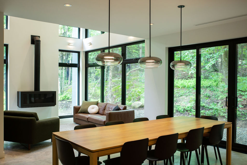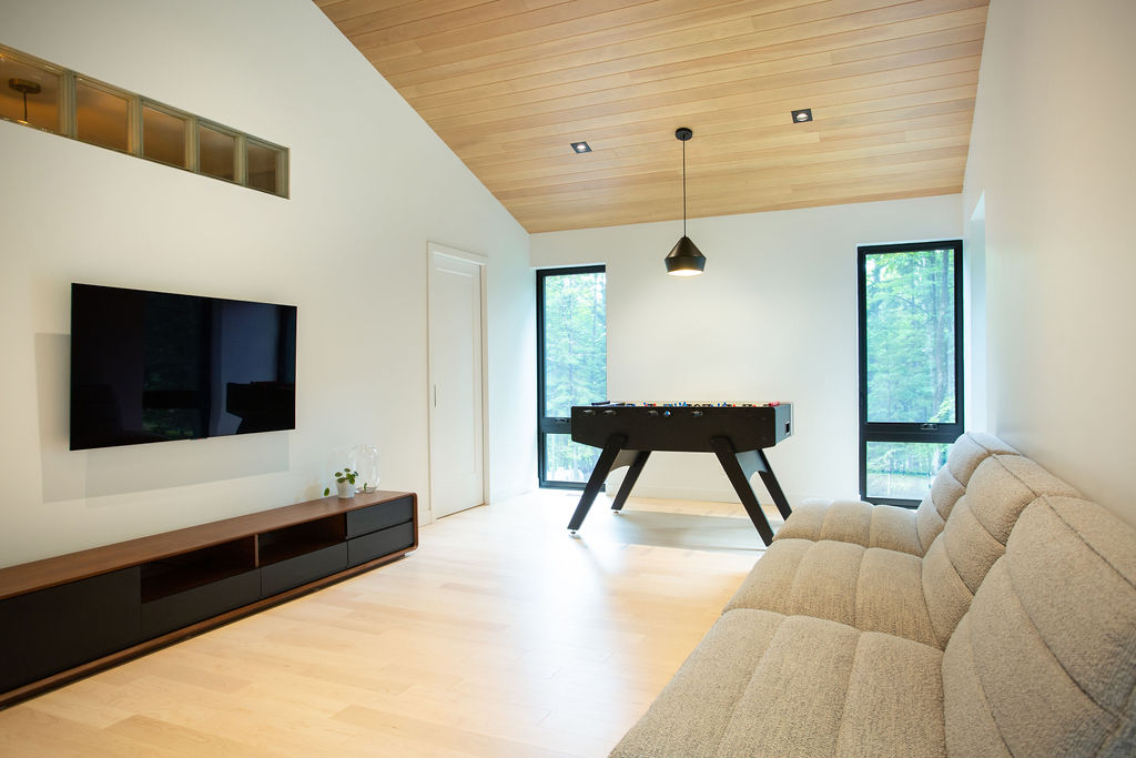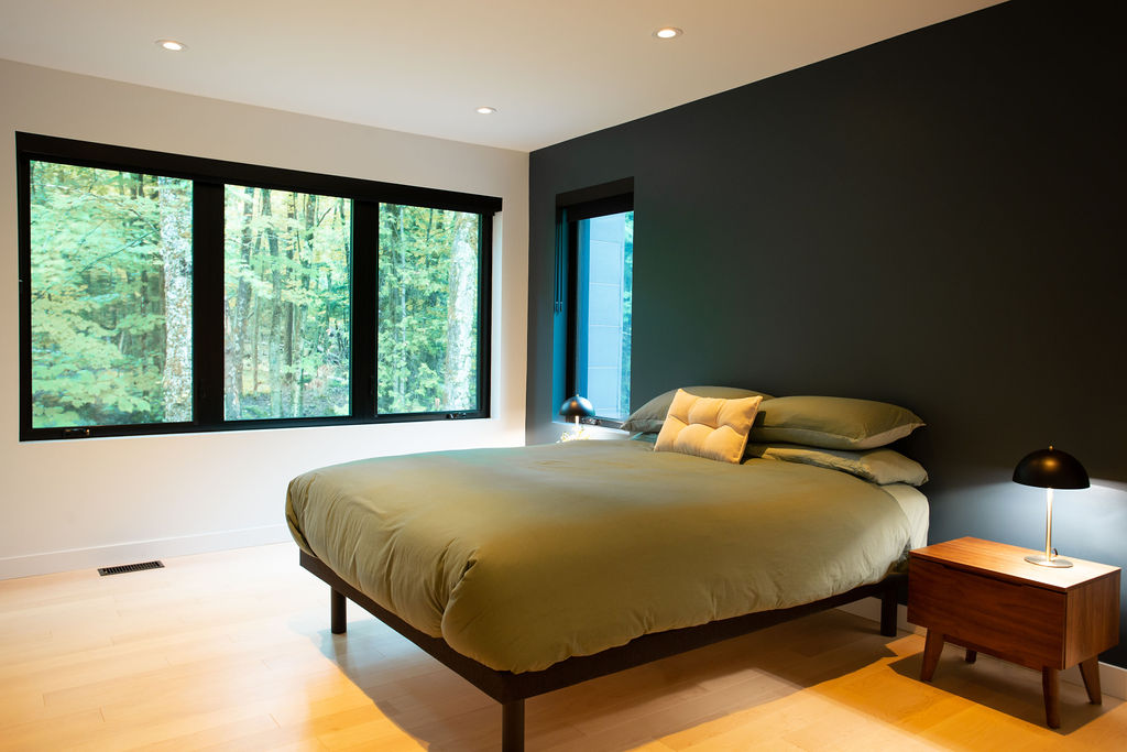 Situé à Owl’s Head, ce chalet certifié LEED® Platine a été conçu pour servir de location Airbnb tout en mettant l'accent sur des éléments architecturaux distinctifs. L’effort a été mis sur l'espace, le confort et la durabilité. Dès l’entrée dans la maison, on retrouve beaucoup de rangement intégré pour les skis et les autres équipements de plein air. Les chambres spacieuses permettent d’accueillir des groupes nombreux tout en offrant des espaces intimes à chacun pour la détente. Les deux salles familiales offrent une atmosphère relaxante, et la grande terrasse couverte invite à la convivialité en plein air. L’équipe a un coup de cœur pour la chambre à 4 lits intégrés confectionnés par nos contremaitres et la cuisiniste du chantier. En bref, ce projet allie esthétique et praticité, répondant ainsi aux besoins des clients tout en restant dans un budget réfléchi pour un investissement réussi.