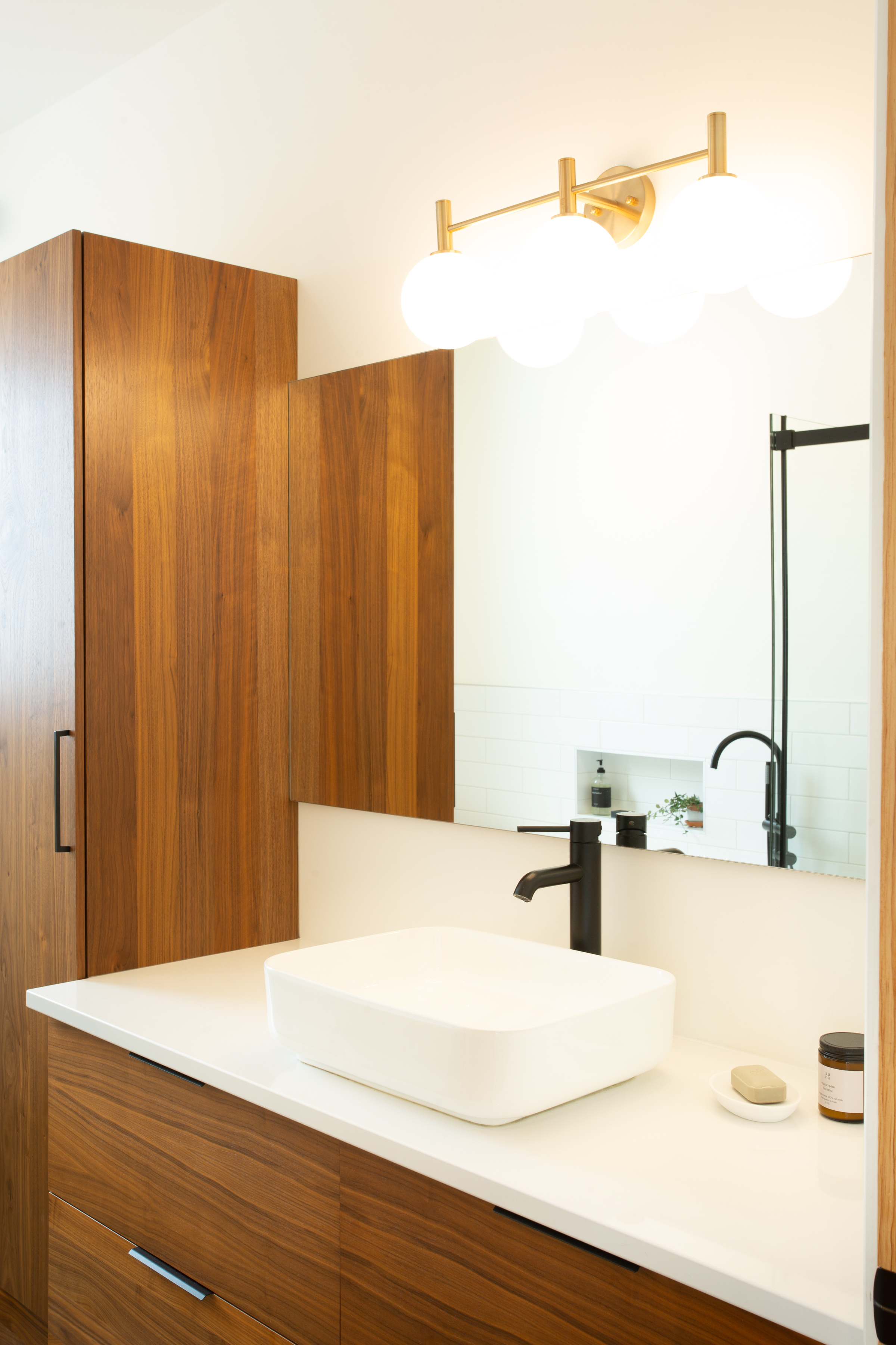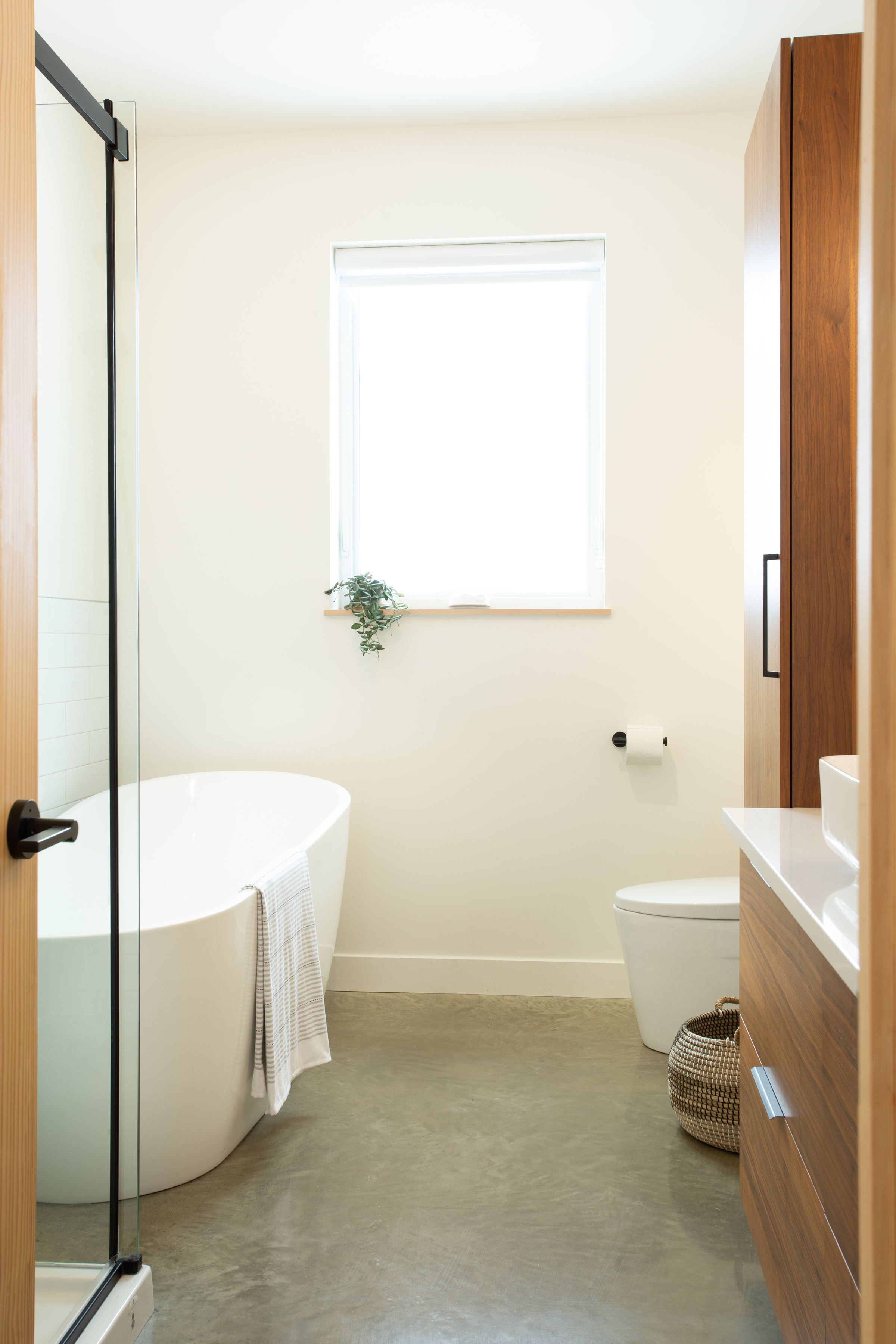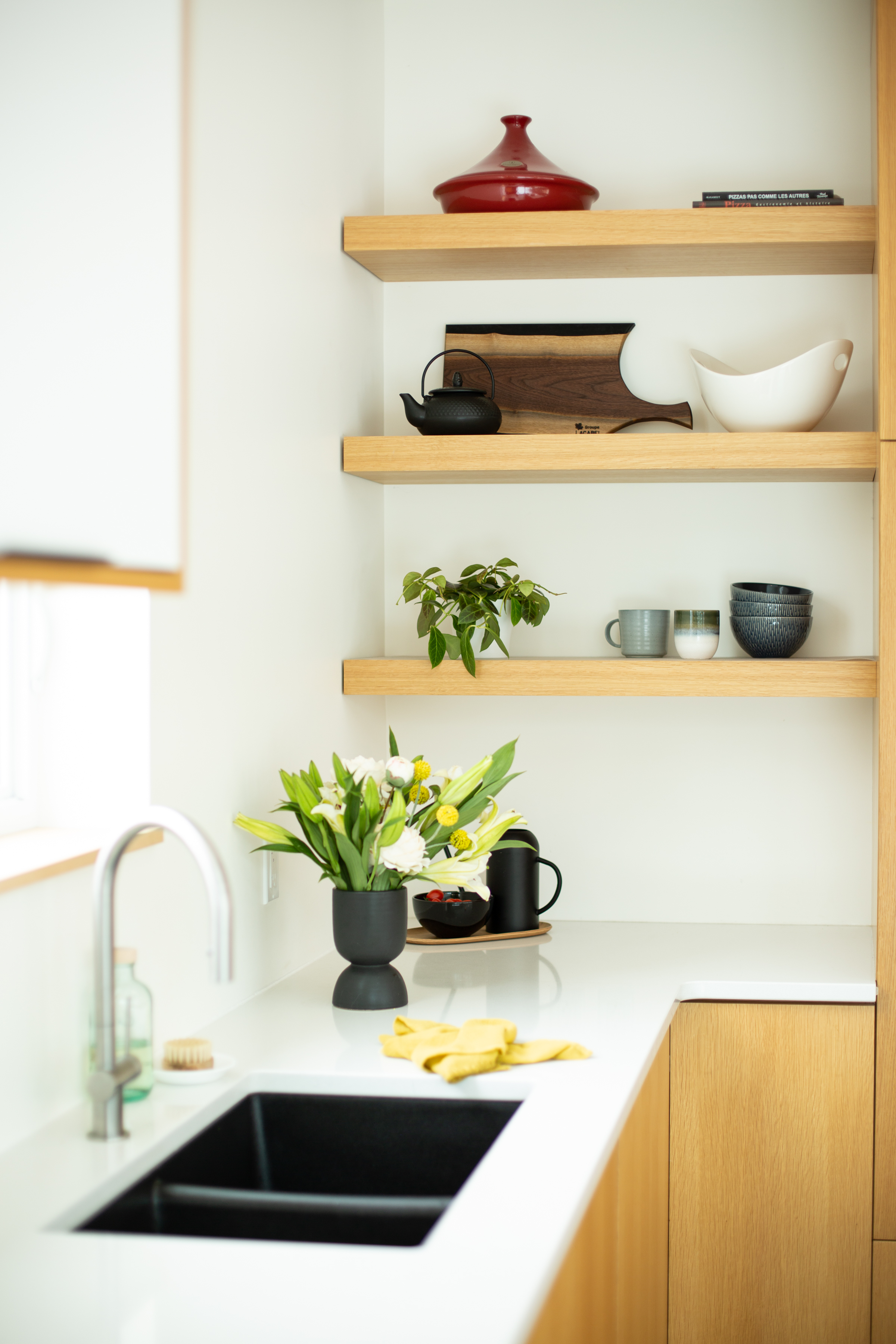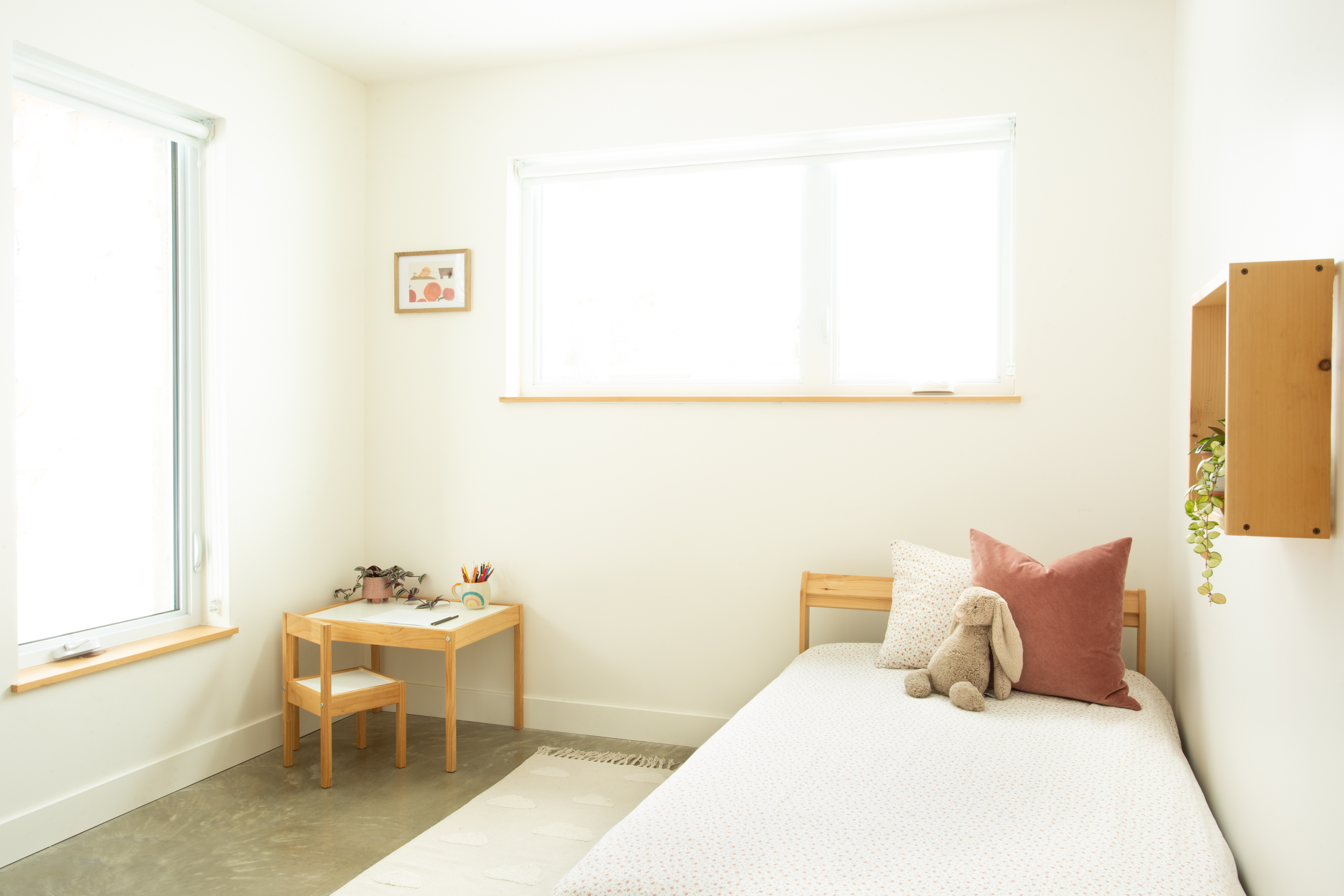 Cette maison a été conçue par nous, puis construite en tâches partagées avec nos clients. Lors de l’élaboration des plans, une attention particulière a été portée à fluidité entre les espaces, accentuée par des lignes pures et des zones de transition plus larges qu’à l’habitude. La disposition des pièces selon leurs usages et les aires de vies rectilignes permettent de se déplacer de façon intuitive. Bien que les voisins soient plutôt près, la disposition des fenêtres permet de maximiser l’intimité familiale de nos clients et de se sentir immergé en nature.