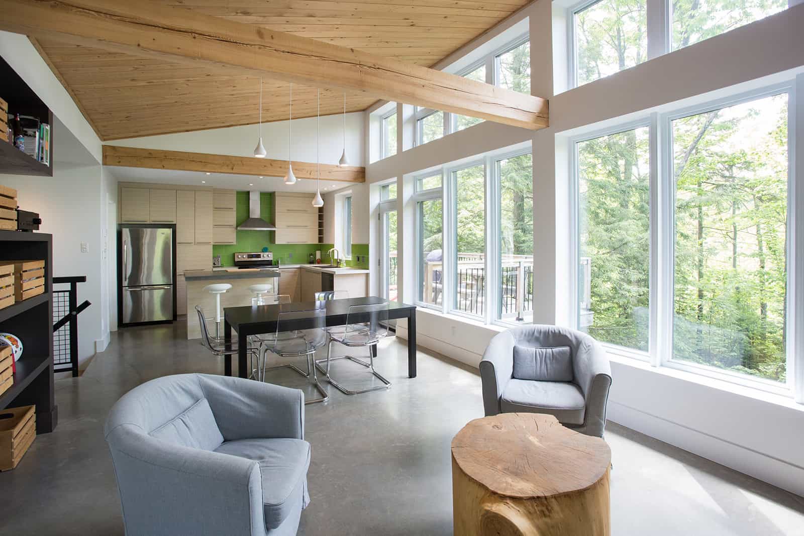 Les propriétaires de cette résidence avaient déjà en main les plans conceptuels, mais UrbanÉco a procédé à l’élaboration des plans pour construction. De style contemporain, le bâtiment s’intègre à merveille à la nature environnante et accueille quatre chambres et deux salles de bain complètes. L’expertise et la qualité de réalisation d’UrbanÉco laisse une impression remarquable à tous ses visiteurs. Une réalisation construite pour passer l’épreuve du temps.