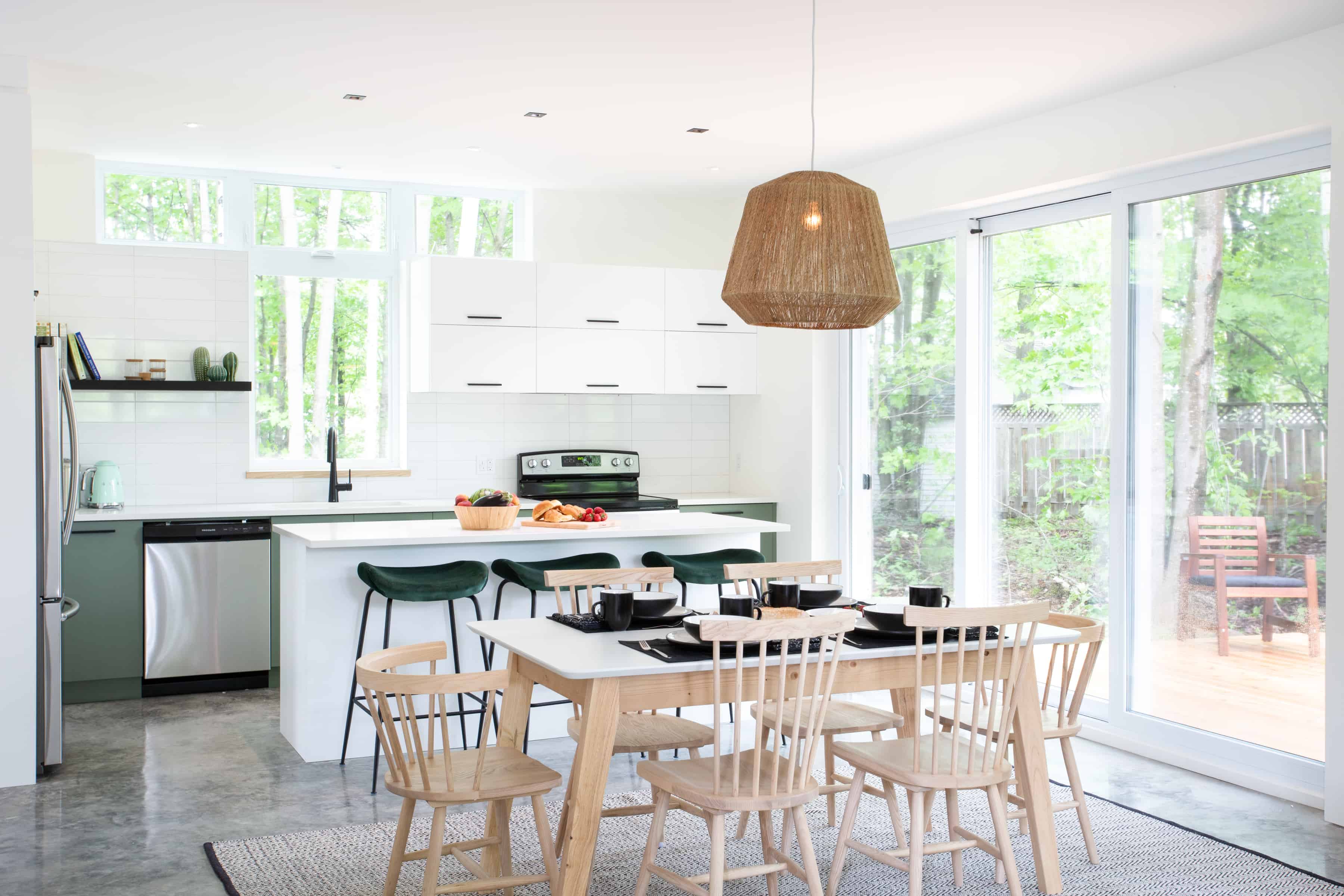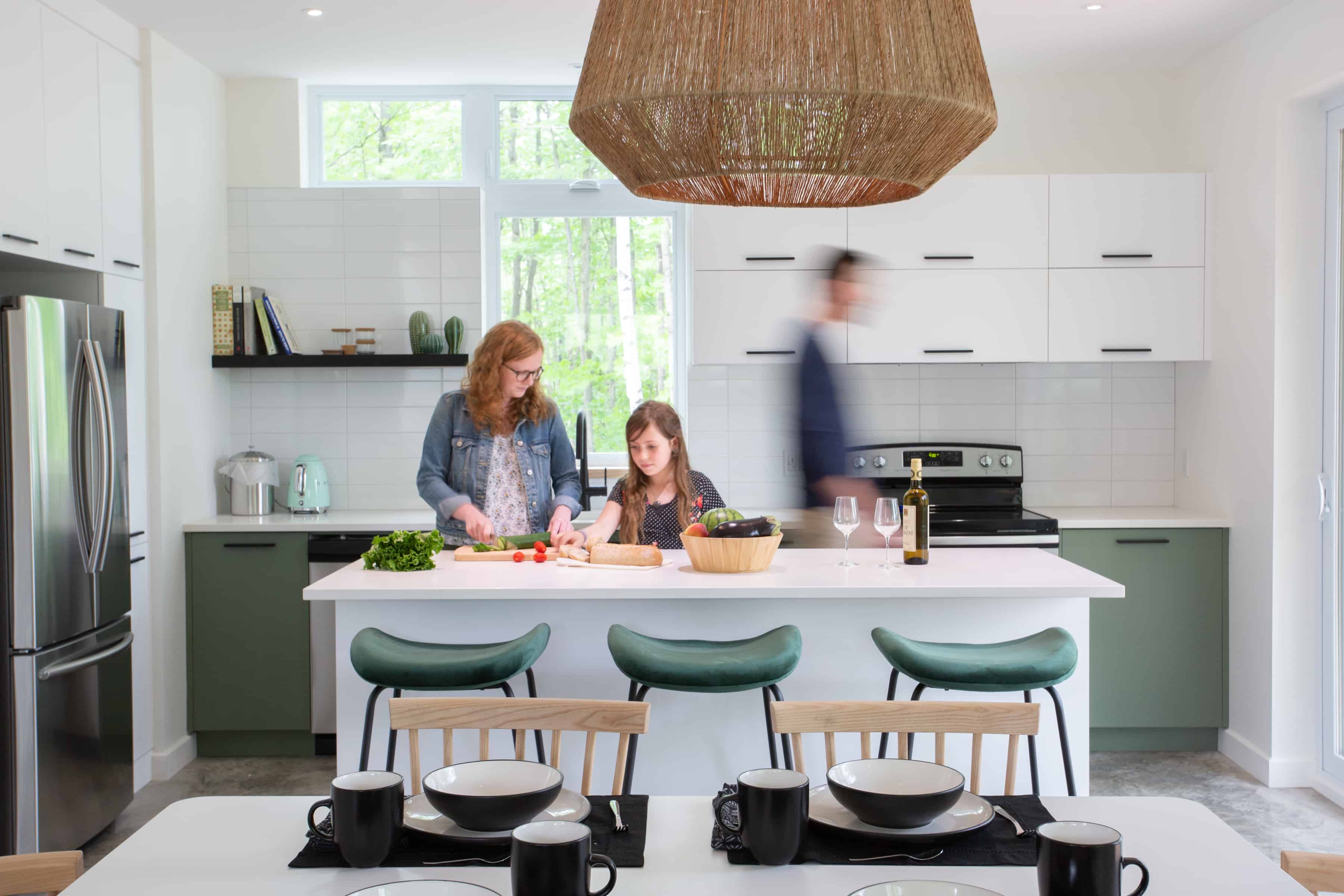 Bienvenue dans la maison modèle la Zéta, certifiée Novoclimat, qui a souligné le démarrage officiel de notre écoquartier Les Boisés UrbanÉco à Deauville. C’est donc à l’image du développement et de nos valeurs que cette réalisation a été dessinée, mettant de l’avant le bien-être de l’habitant et le respect de la nature environnante. Lumineuse et fonctionnelle, cette maison de 1326 pc est idéale pour le couple dynamique qui en a pris possession en juillet 2021. Les deux niveaux de la maison comprennent 3 chambres, une pièce de rangement familial et une salle de bain complète à l’étage, ainsi qu’une salle d’eau combinée à une salle de lavage près des aires de vie au rez-de-chaussée. Une magnifique terrasse à l’arrière permet de s’y ressourcer, dès les premières journées du printemps jusqu’à celles plus fraîches en automne.