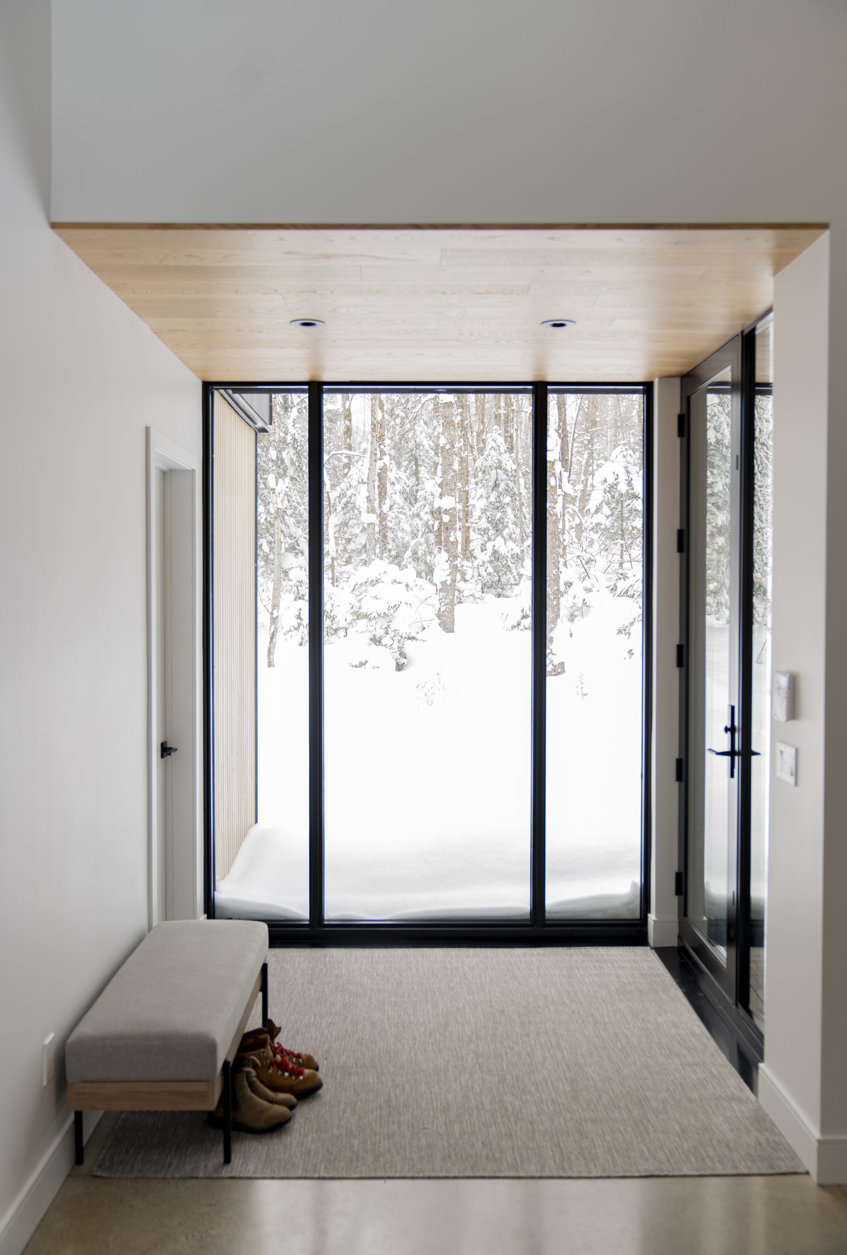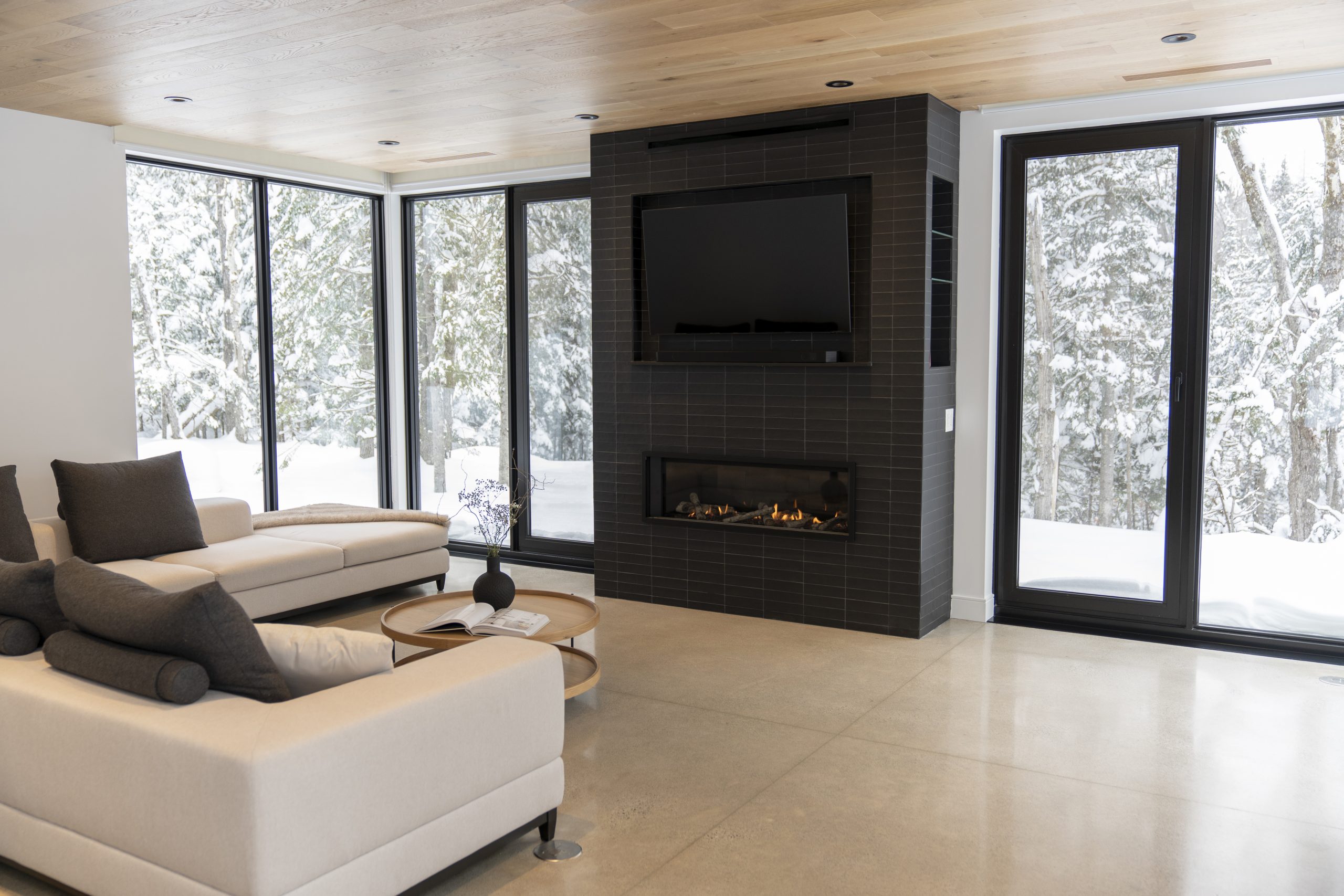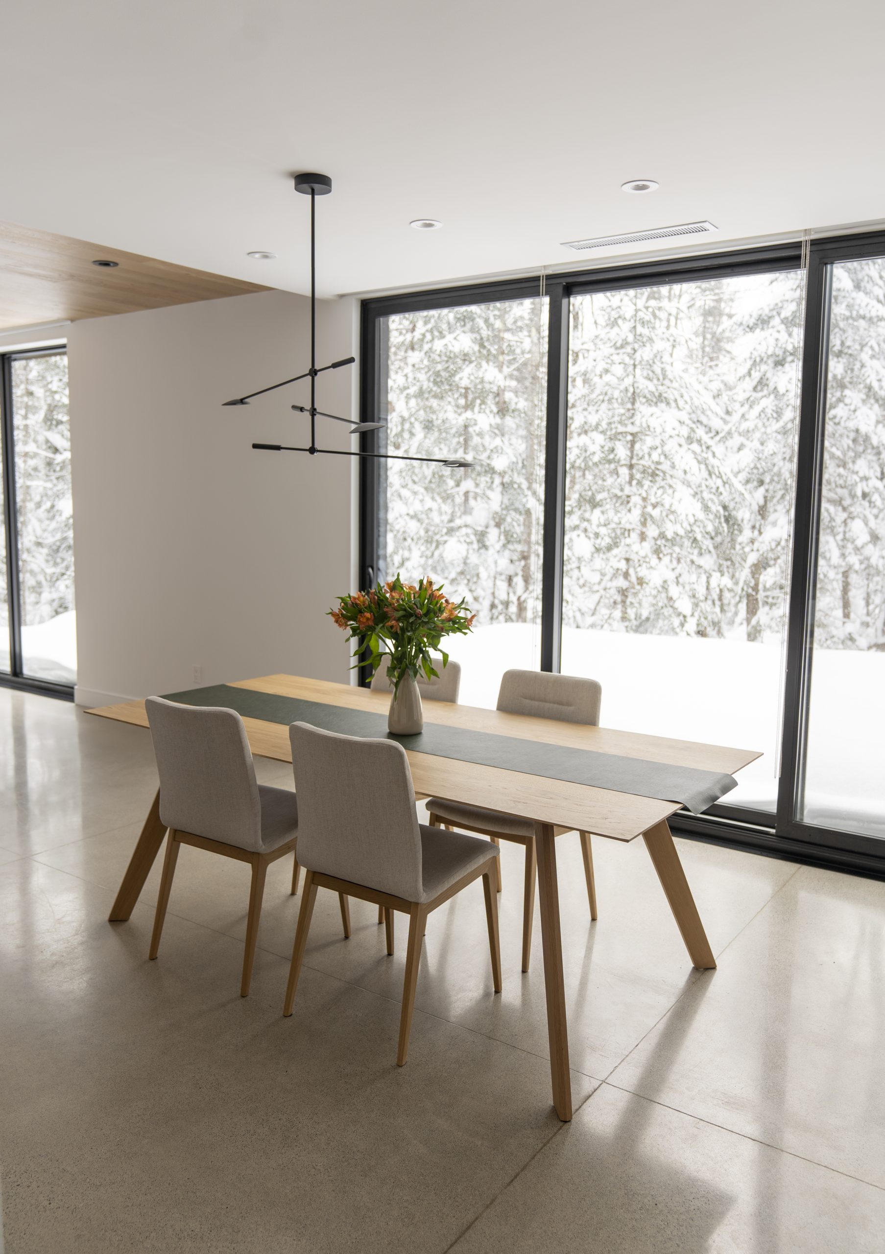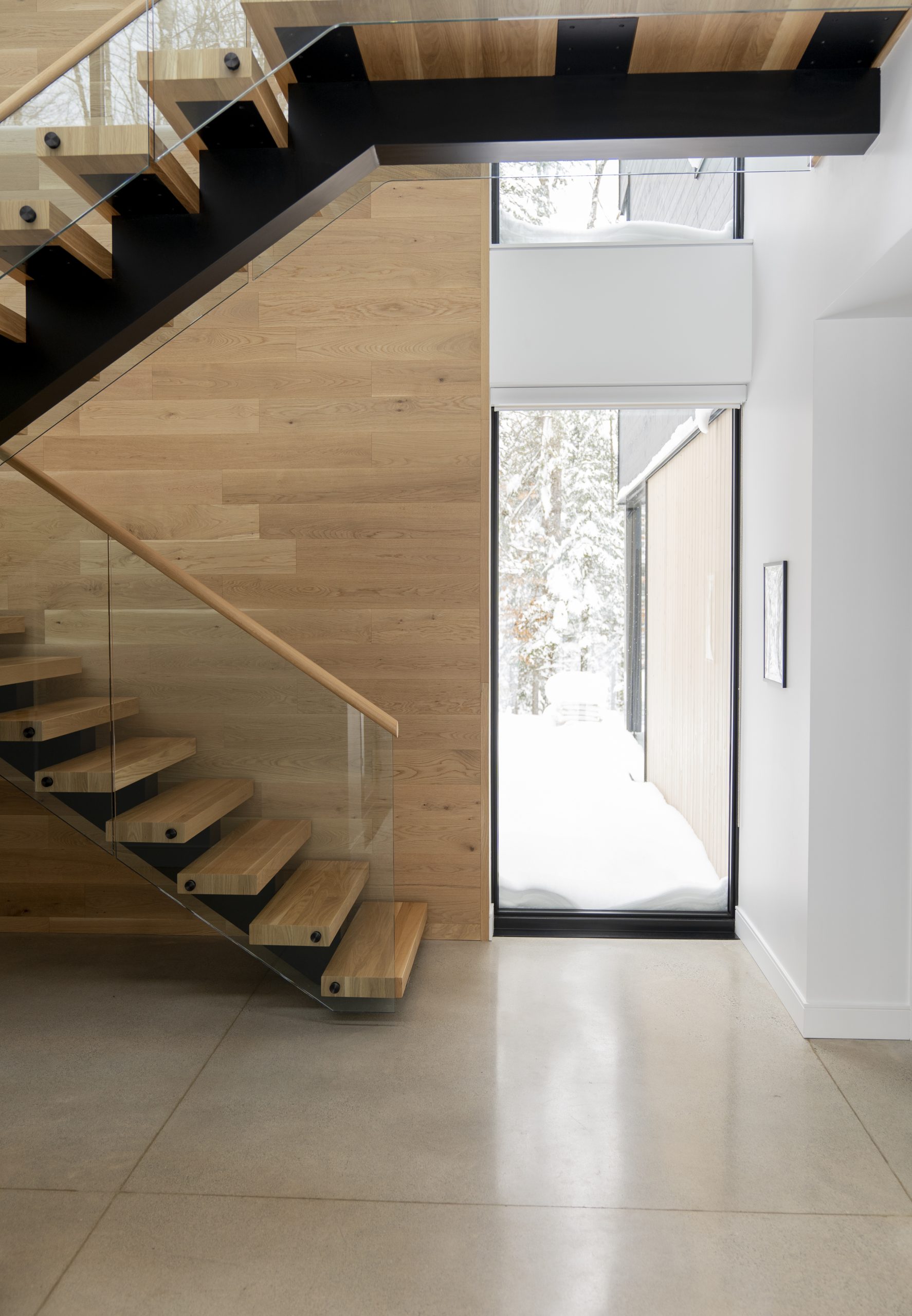 Dès l’entrée, l’attention portée aux détails se reflète dans des finitions de grande qualité et un design épuré. Le contraste des planchers de bois franc à l'étage et des planchers de béton au rez-de-chaussée ainsi que le choix des fenêtres plancher-plafond dans l'ensemble du rez-de-chaussée se fondent parfaitement au décor intemporel qui entoure la maison.