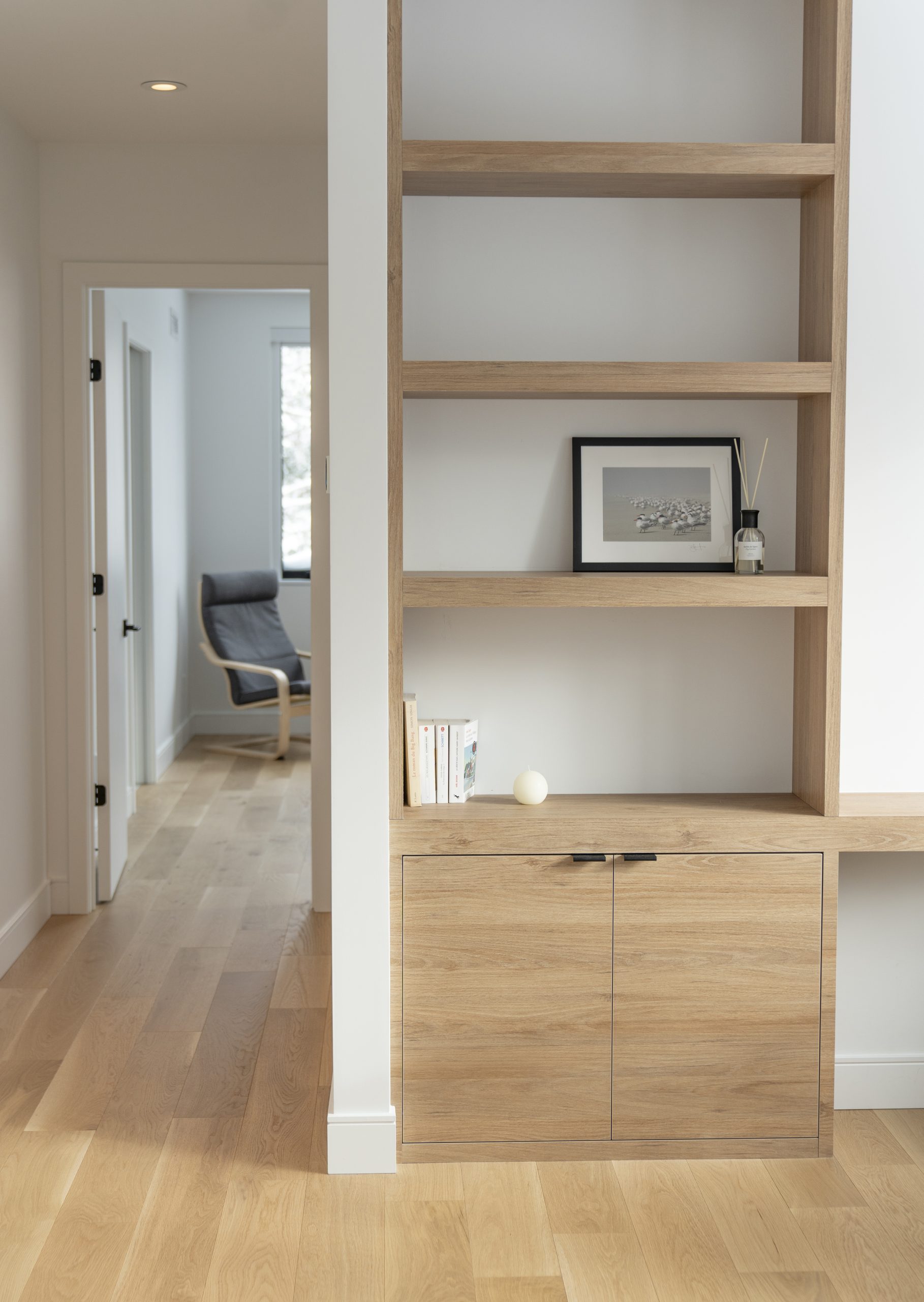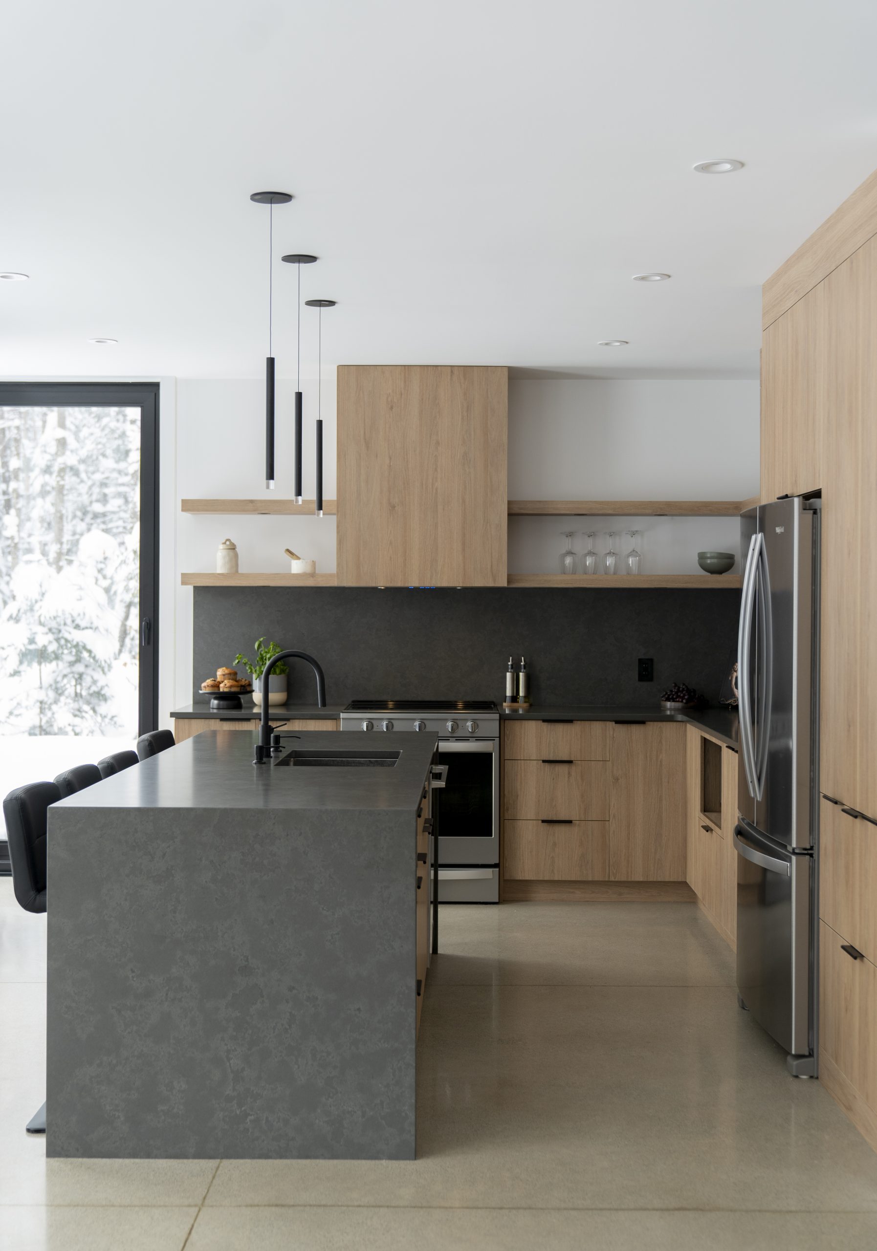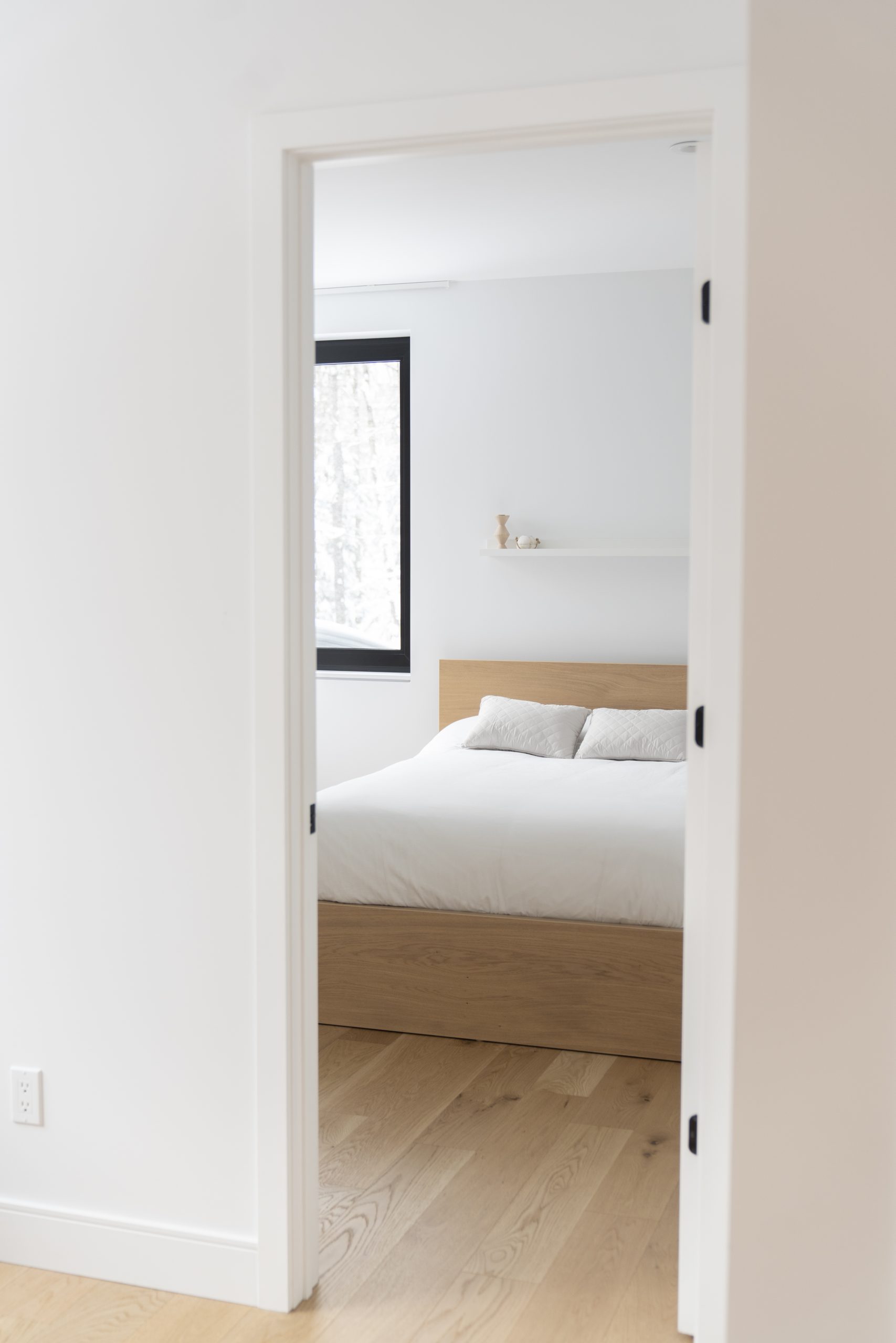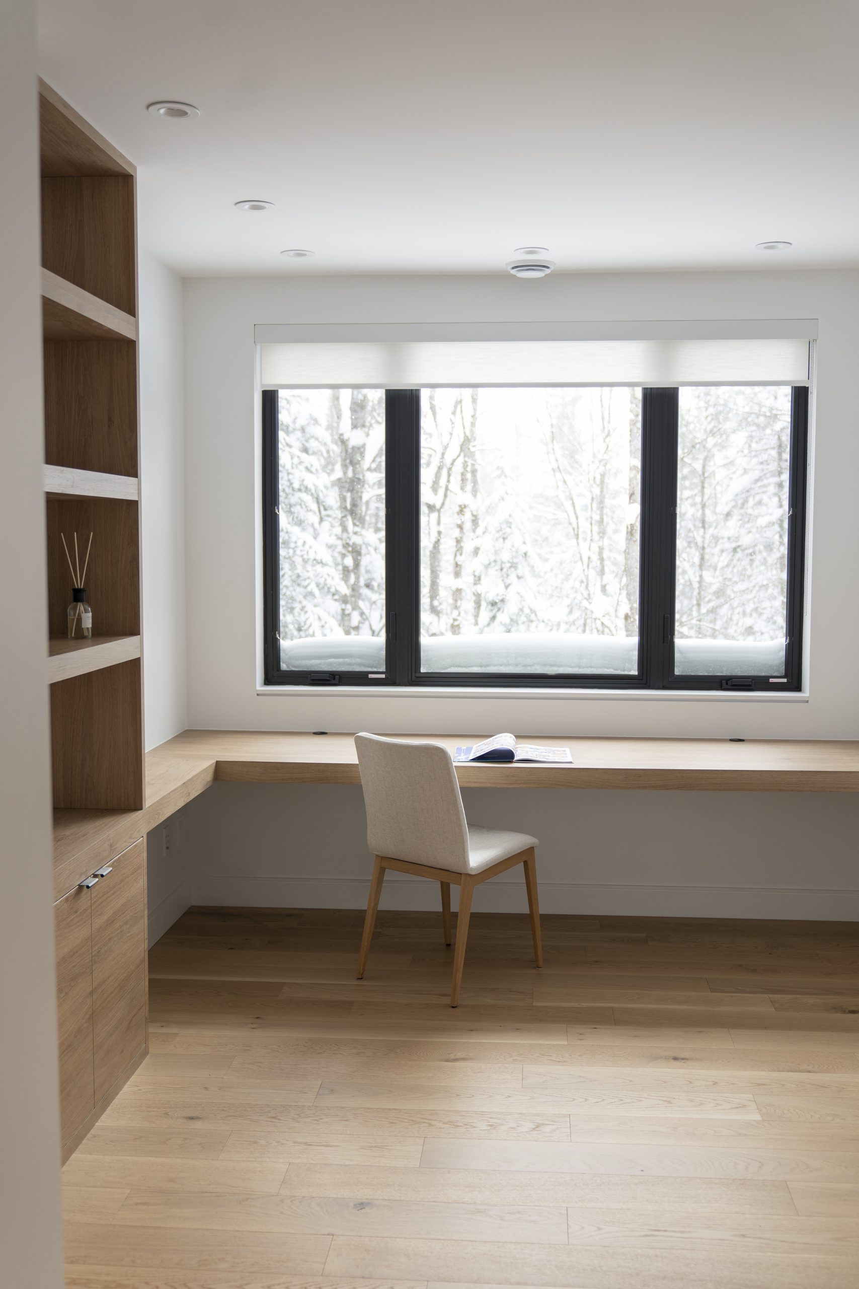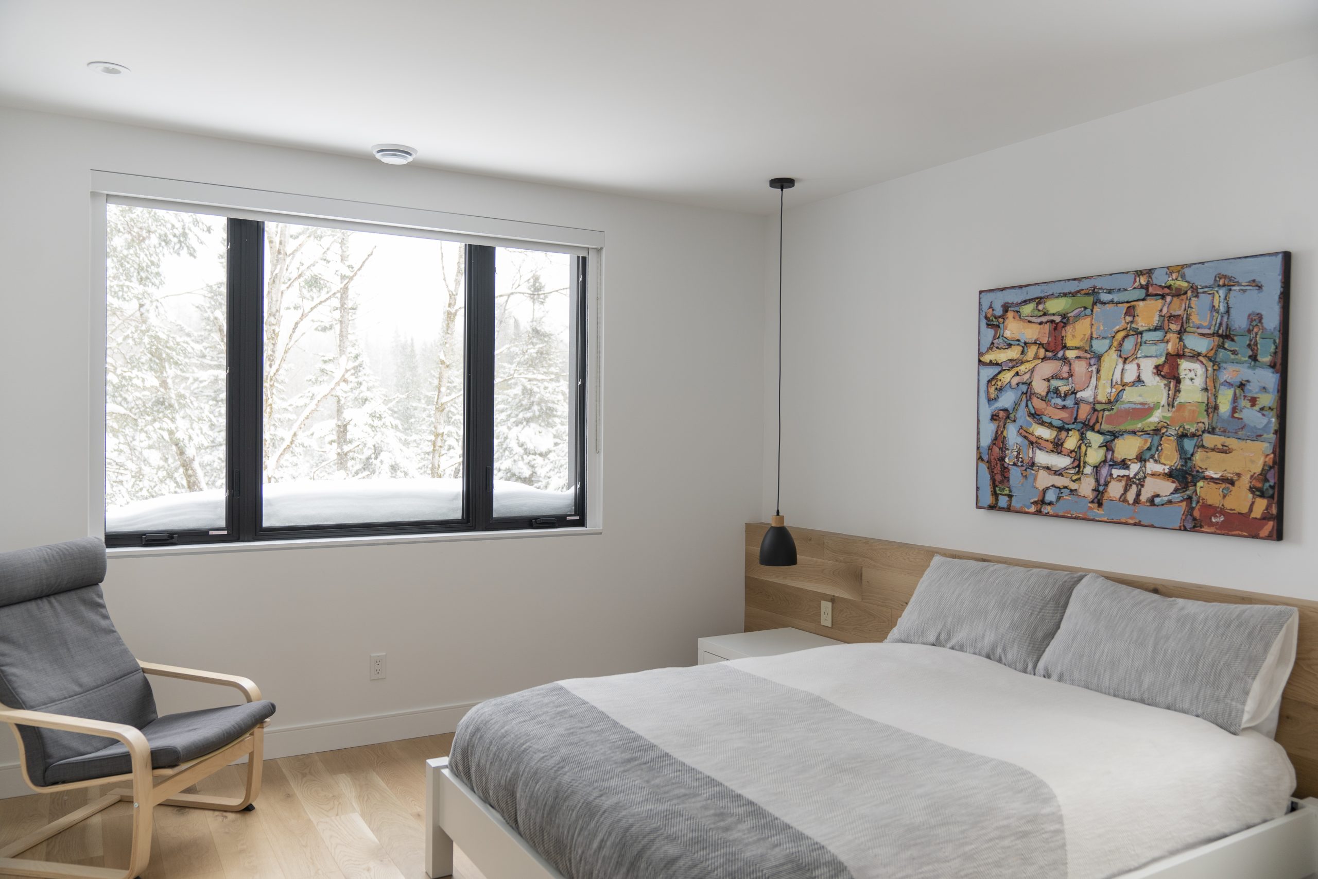Dès l’entrée, l’attention portée aux détails se reflète dans des finitions de grande qualité et un design épuré. Le contraste des planchers de bois franc à l'étage et des planchers de béton au rez-de-chaussée ainsi que le choix des fenêtres plancher-plafond dans l'ensemble du rez-de-chaussée se fondent parfaitement au décor intemporel qui entoure la maison.