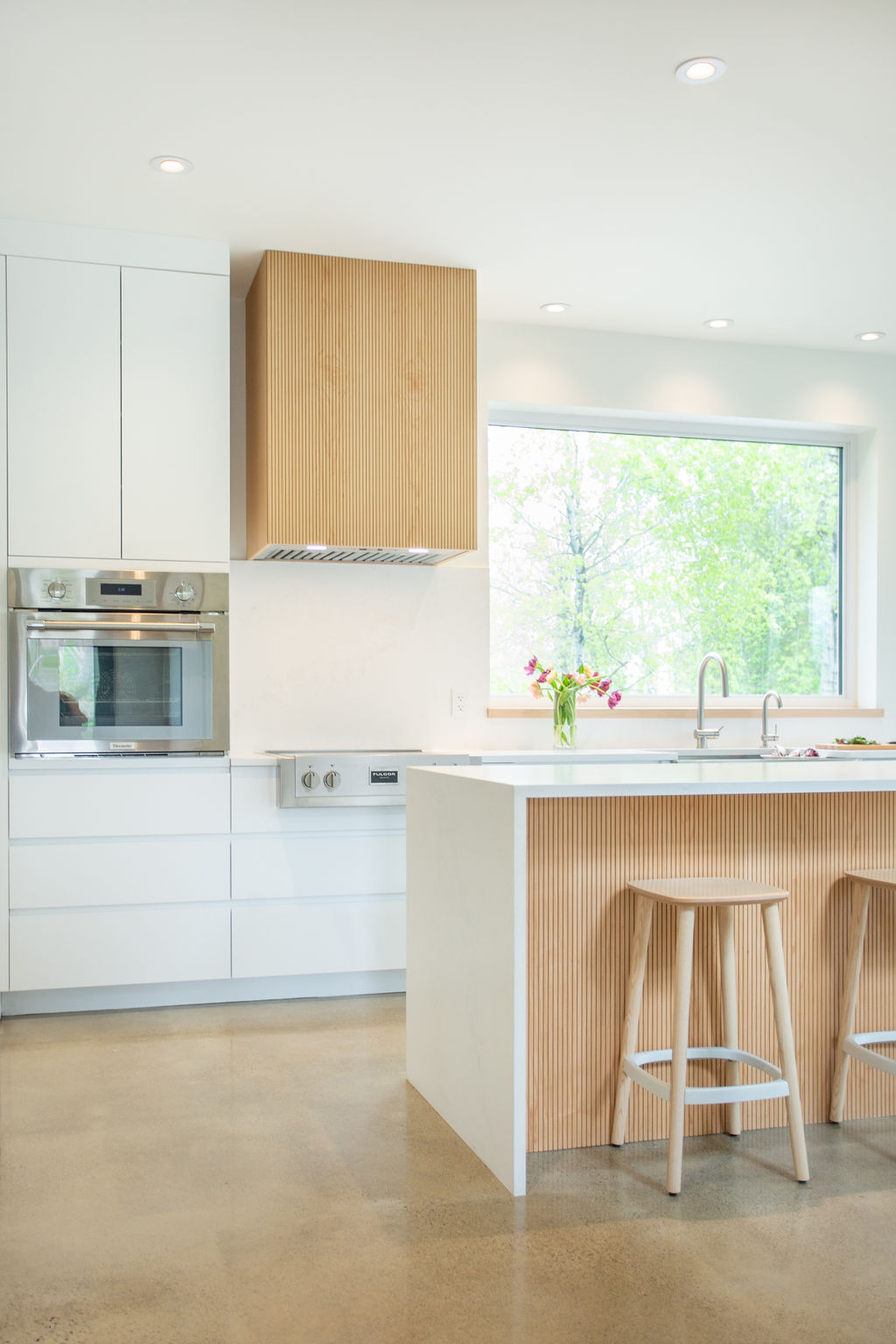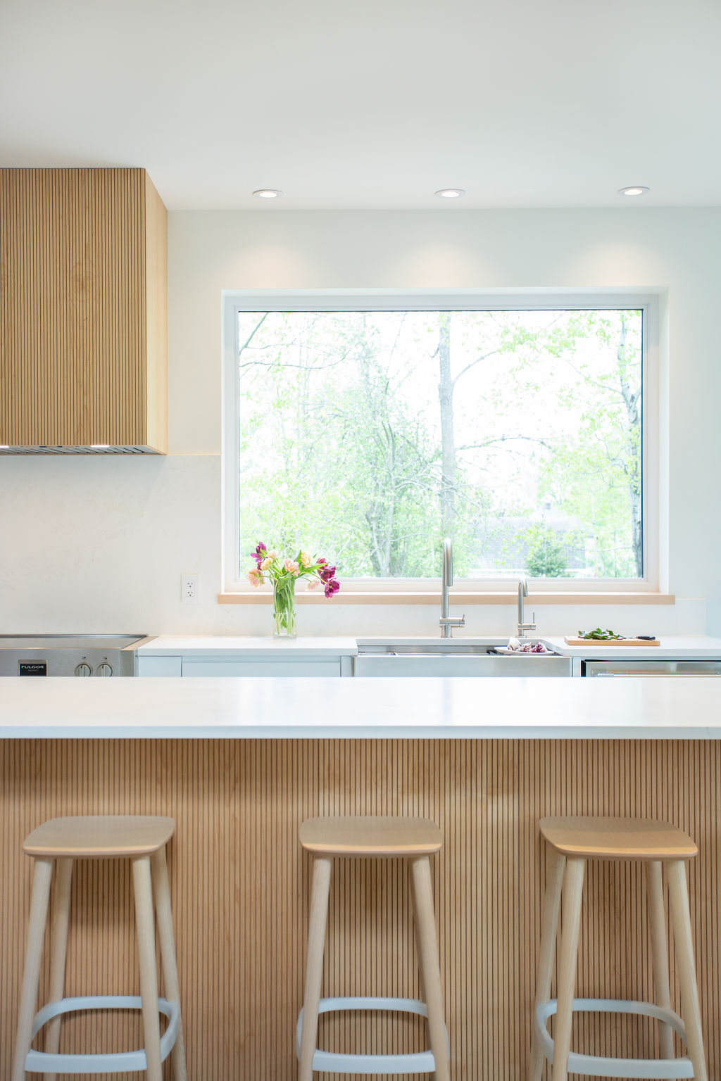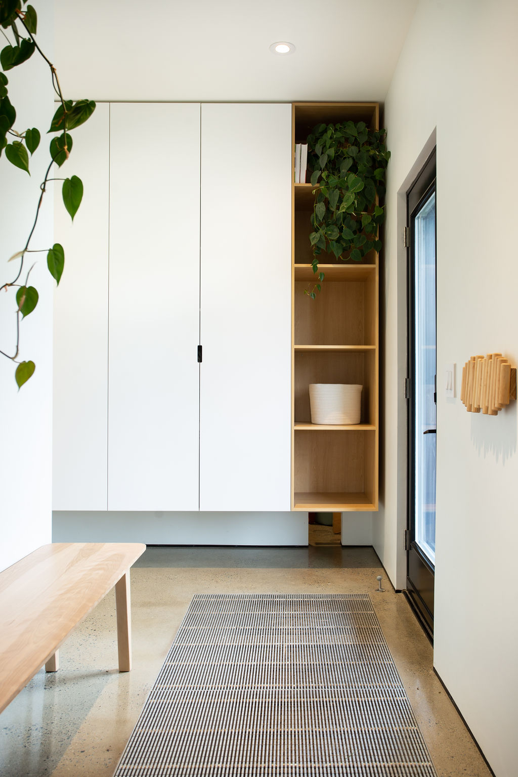 Cette maison, à la fois moderne et chaleureuse, est dotée de mobiliers intégrés ingénieux et de finitions en bois qui ajoutent de la chaleur et de la douceur au décor. Les murs sans moulures et les références subtiles à la passion et la profession vinicole de Madame, notamment à travers les luminaires, transforment cette maison en un endroit où l'on a envie d'être ; où l'on ressent l'âme et la chaleur de ses occupants.